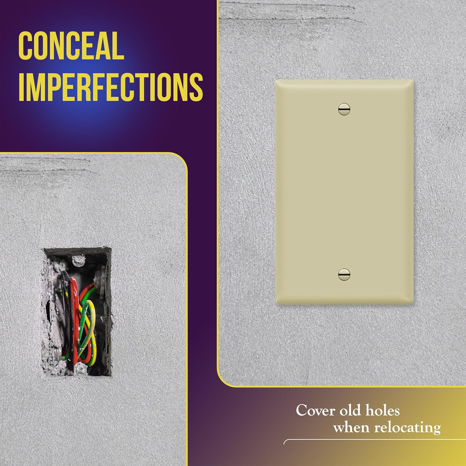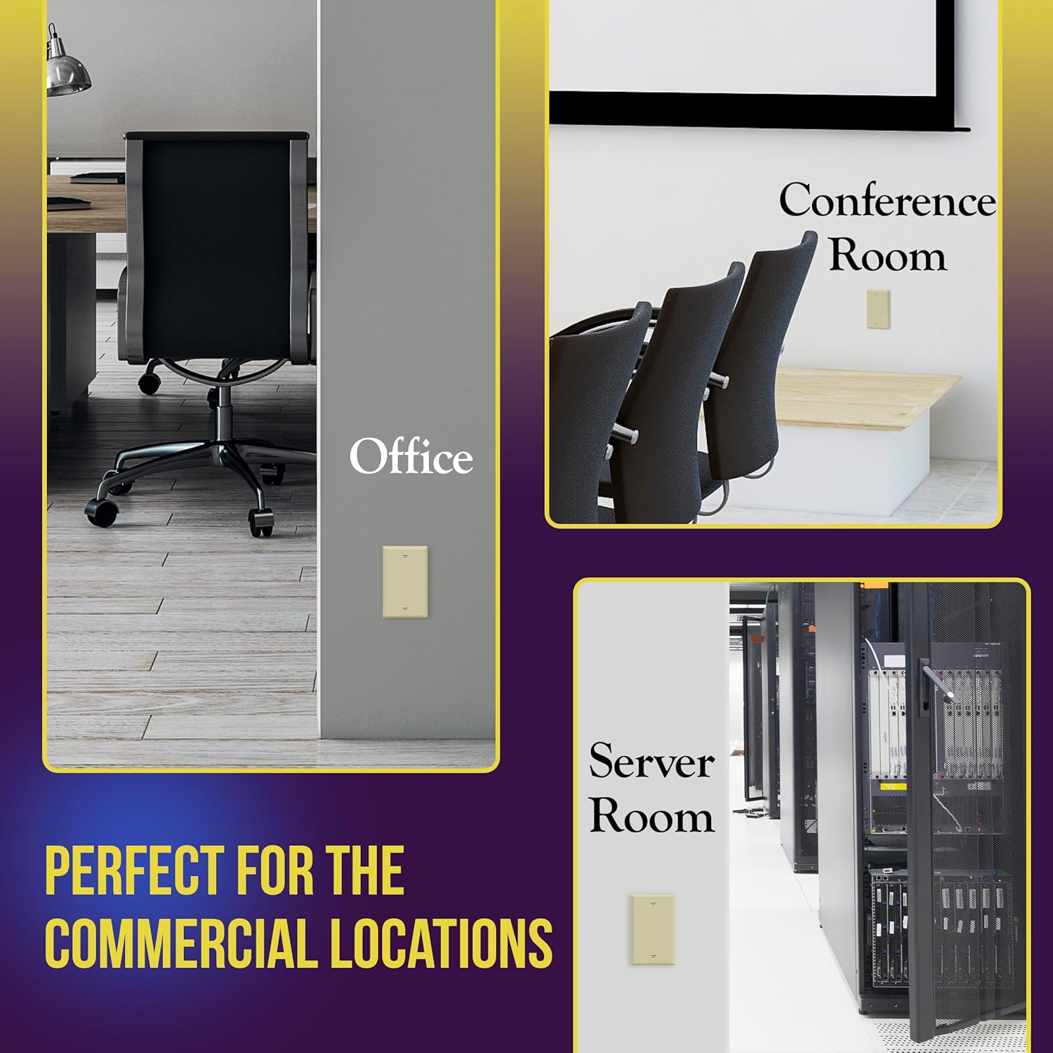 ENERLITES Blank Device Wall Plate, Gloss Finish, Standard Size 1-Gang 4.50" x 2.76", Polycarbonate Thermoplastic, 8801-I, Ivory