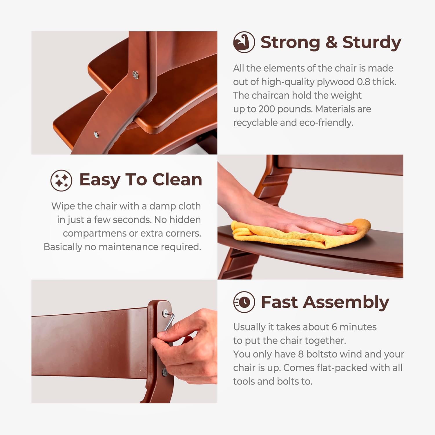 FORNEL Adjustable High Chair in Dark Walnut Finish | The Forever Chair That Grows from Toddler to Adult | Premium Solid Wood Construction