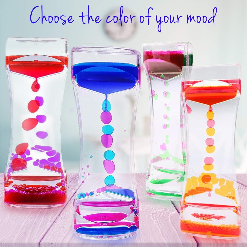 - Perfect liquid bubbler Timer Toys: Bubbler measures 2" wide x 5.55" inches in length. Each liquid timer contains two colors inside. This liquid timer makes the perfect fidget toys, paperweight, office desk toy and even as classroom rewards.