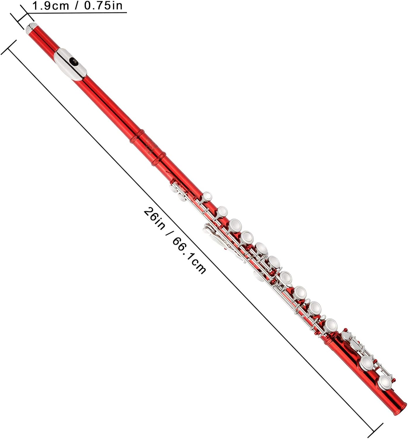 EastRock Closed Hole Flutes C 16 Key for Beginner, Kids, Student -Nickel Flute with Case Stand and Cleaning kit (Red)
