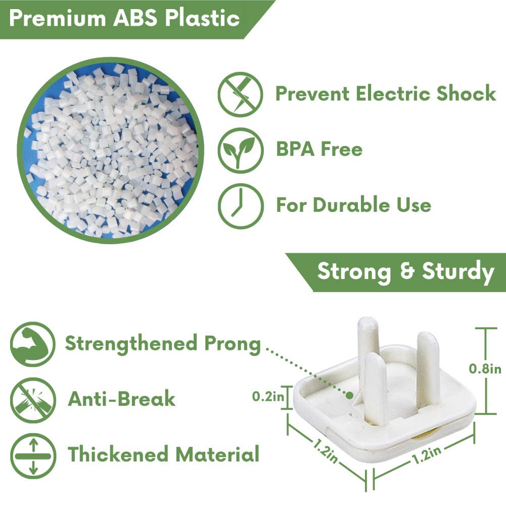- STRONG & STURDY – Our outlet caps are made of high-quality ABS plastic, which is eco-friendly, BPA free, and non-toxic. Thickened prongs make each socket cover durable and sturdy.