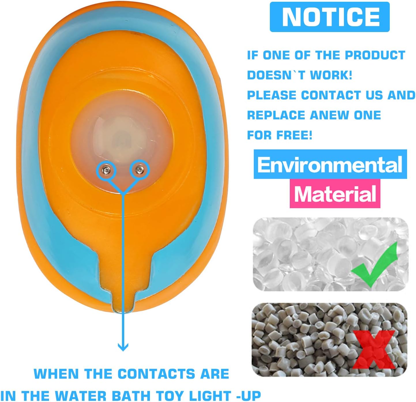 - The light up bathtub toys are made of rubber that will float on water, there are 2 Sensors at the bottom, it will light up auto when put it on water, ideal gifts for baby playing in the bath room.