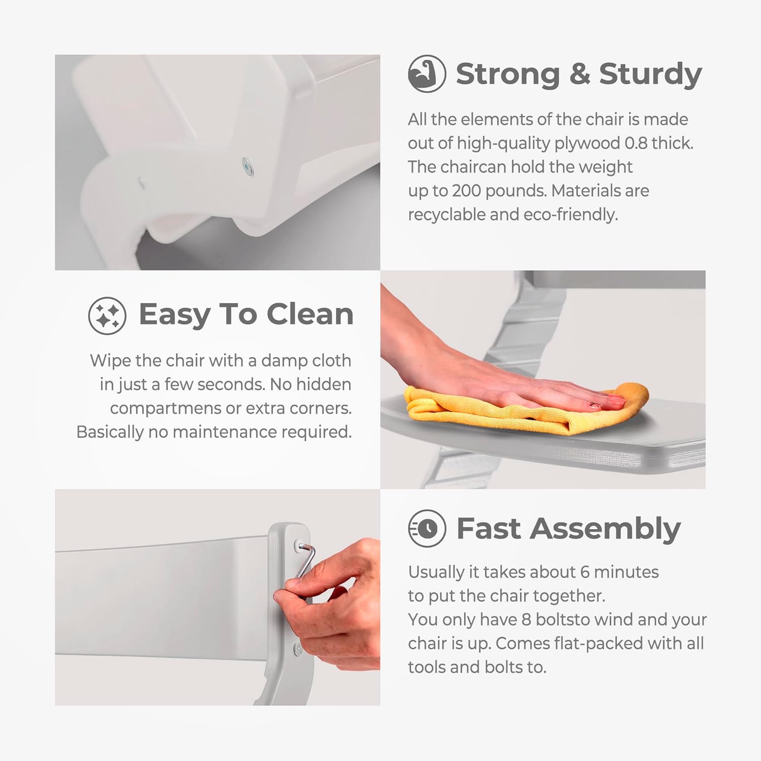 - The toddlers chair has a very solid construction, with stable legs which makes it difficult to topple over; All Materials are FSC and CARBS certified, EPA TSCA Title VI compliant