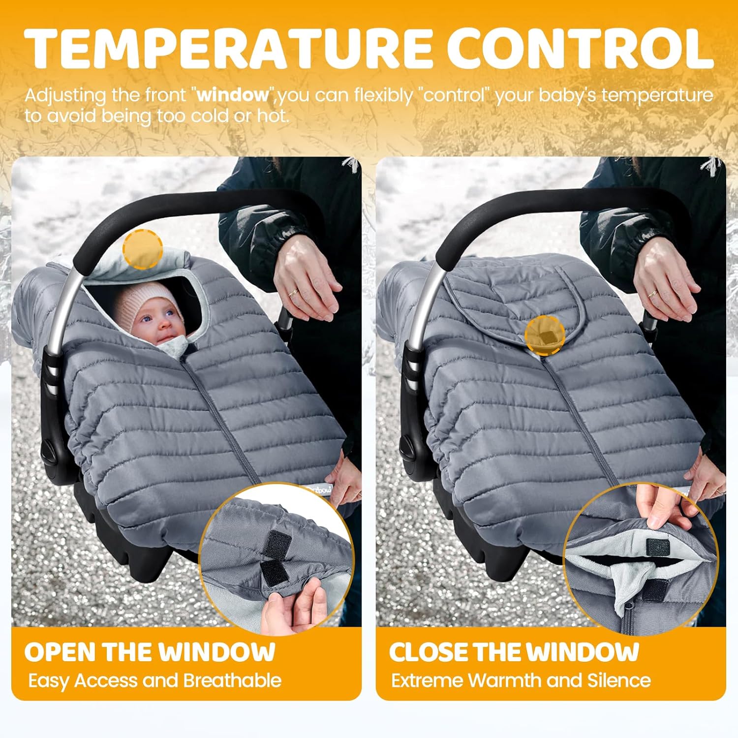 - š¦šššš§š¬ š®š»š± šš¢š”š©šš”ššš”šš ššš¦ššš”: The Orzbow Car Seat Cover front zipper design makes it easy to put baby in and out and the breathable pull-over flap shield provides baby's face with additional coverage and protection when needed in unfavorable weather conditions