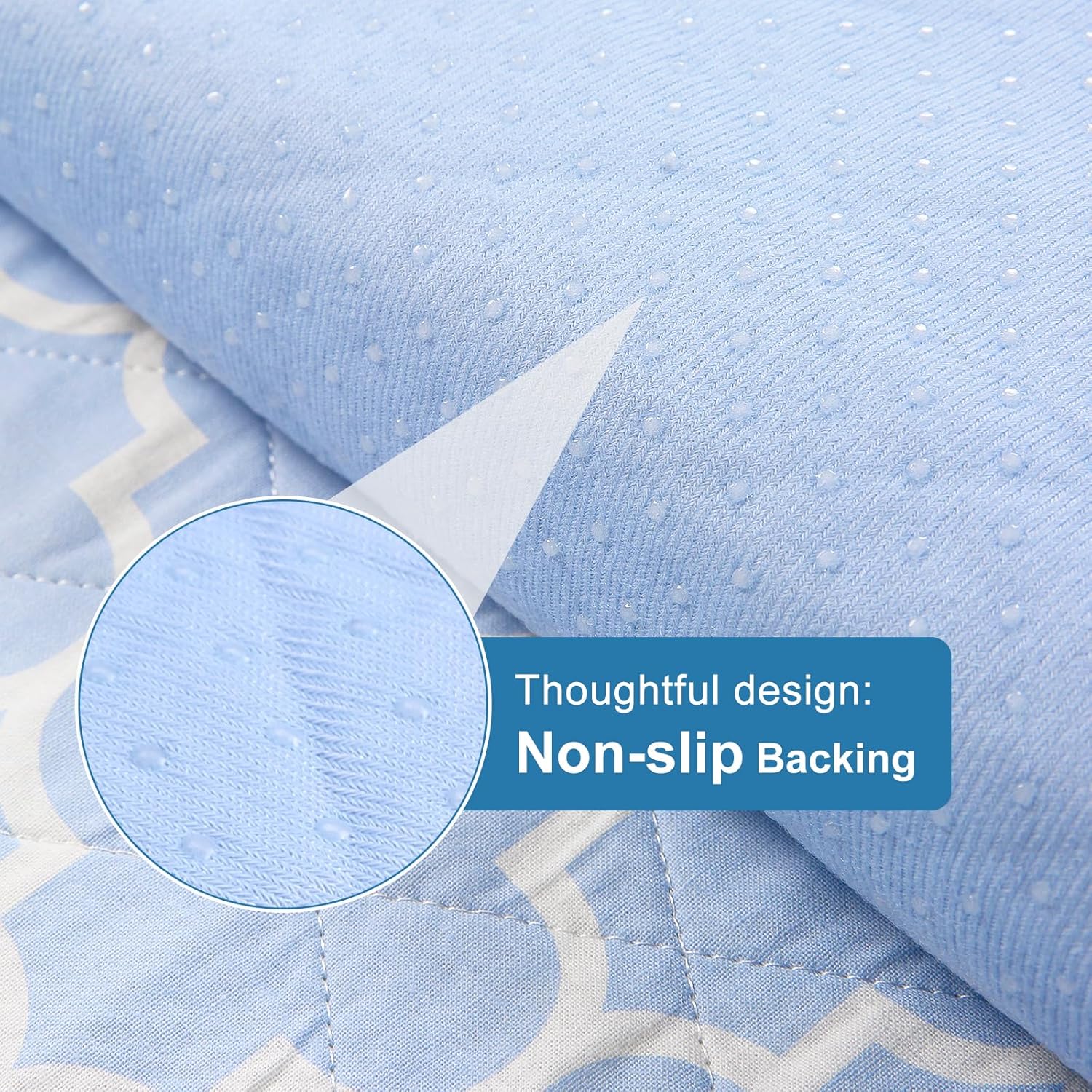 - 4-layer design: Our mats adopts a 4-layer design. The first layer of polyester-cotton knitted fabric has a soft surface.the second layer is super absorbent,high density inner layer. The third layer is breathable and waterproof.The last layer are non-skid gripping dots.Keeping your sheets and bed dry and protecting all night while still being comfortable.