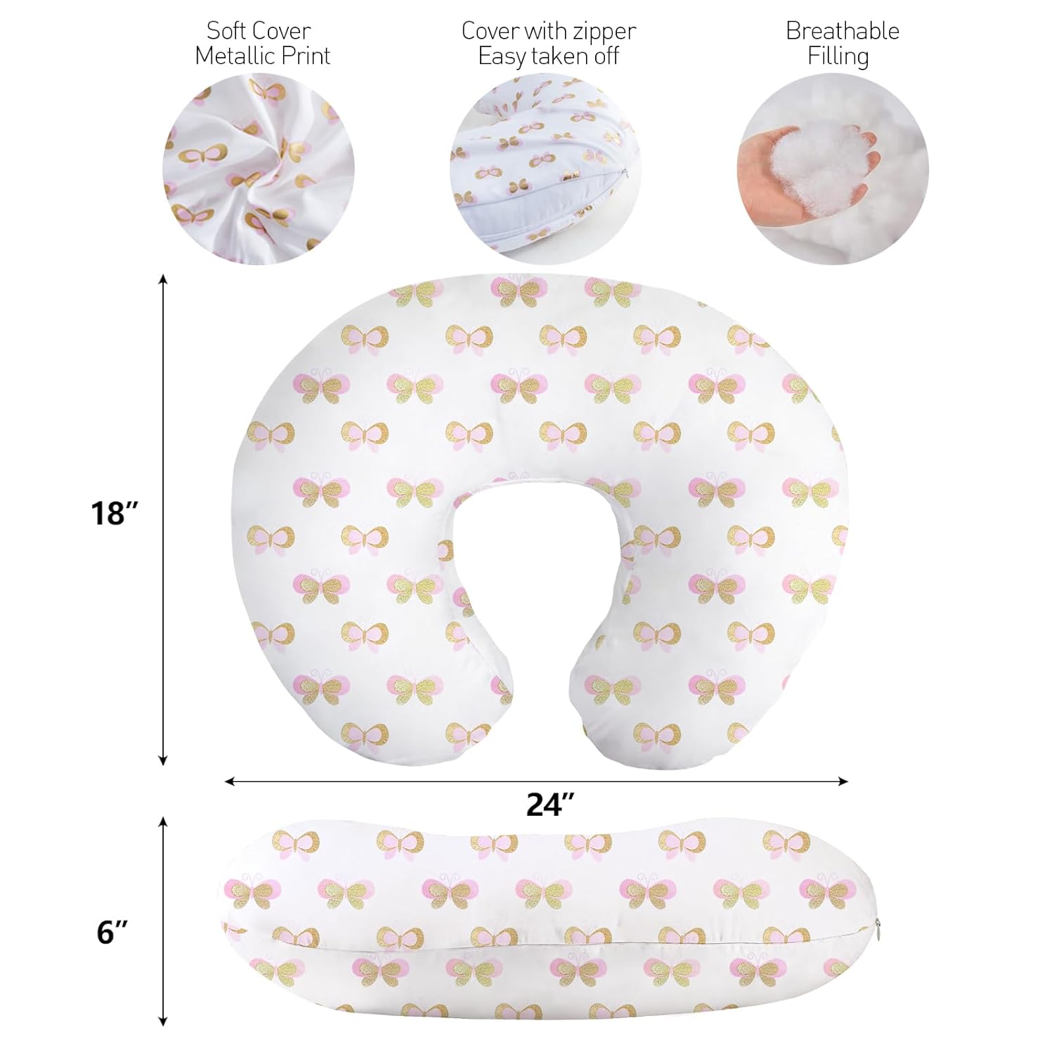 Little Grape Land Nursing Pillow, Breast Feeding Pillows for Mom, Butterfly Soft Cover with Breathable Filling, Feeding Support Pillow for 0-12 Months, Multifunctional Support Cushion for Travel