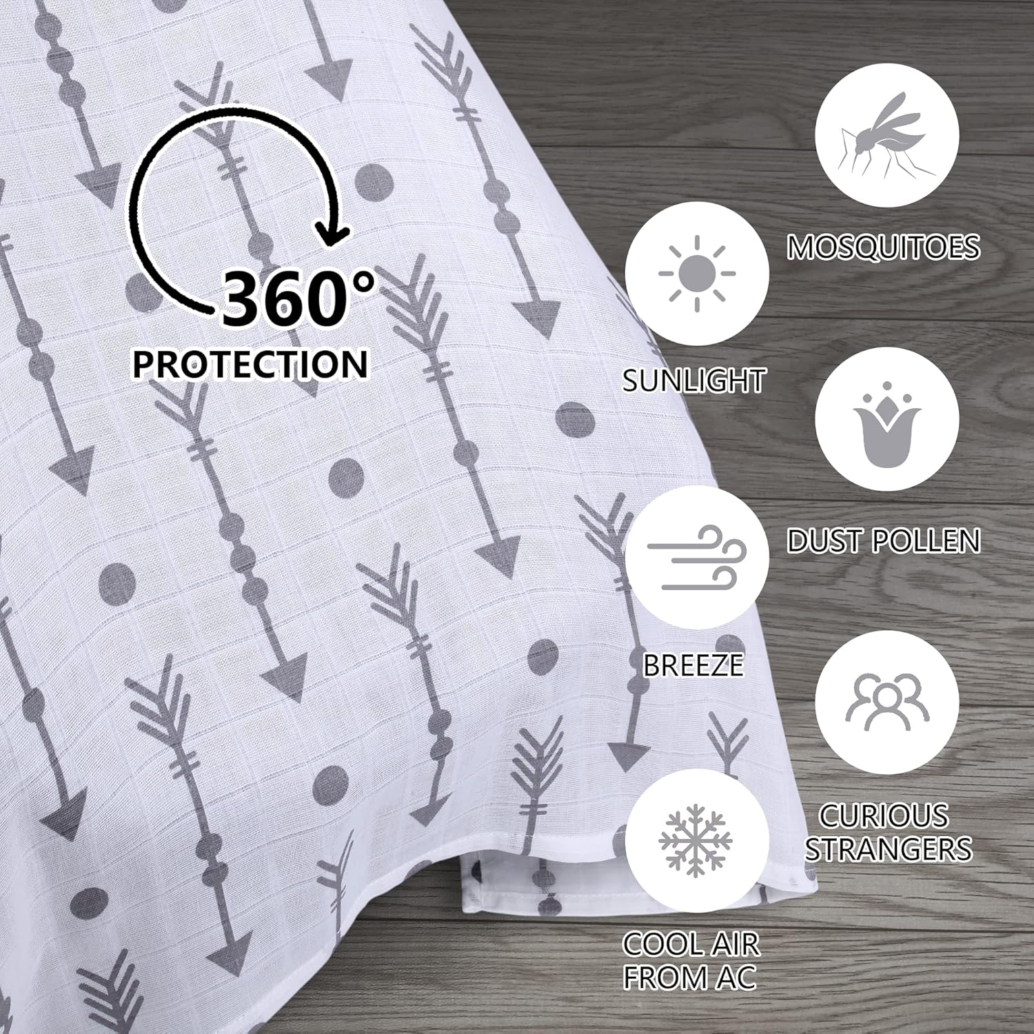 - 360° FULL PROTECTION: Our muslin car seat covers offer 360° coverage, and protecting your baby from sun, wind, summer heat, cool air from ac, and even curious strangers. It helps create a cool, cosy and private space for your baby when parked outside