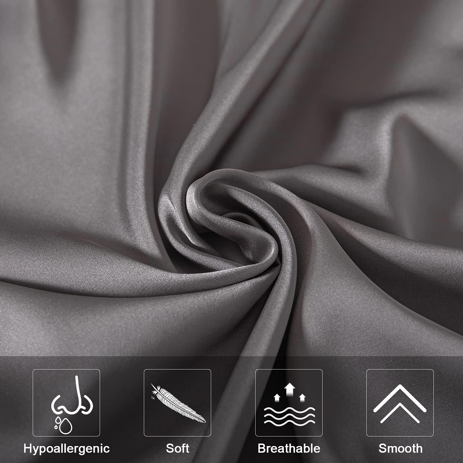 Mulberry Silk Pillowcase for Hair and Skin,Standard Size Cooling Silk Pillow Case with Hidden Zipper,Allergen Proof Dual Sides Soft Breathable Smooth Silk Pillow Cover for Women(Standard,Dark Gray)