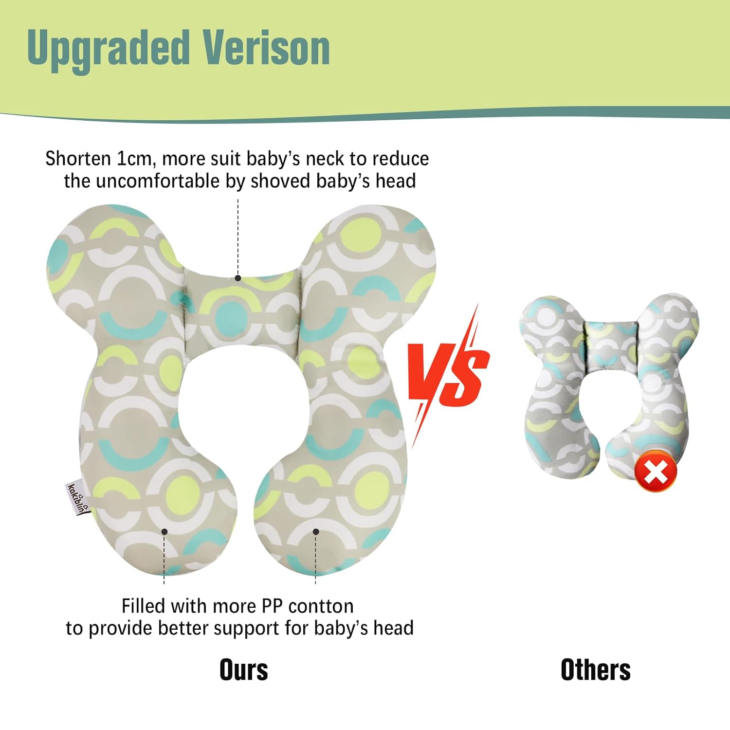 - U Shaped Design(upgraded): baby support pillow filled with more PP cotton for the two side which can provide a better support for baby’s head, and reduce width of the neck support part which may not push baby's head to feel uncomfortable