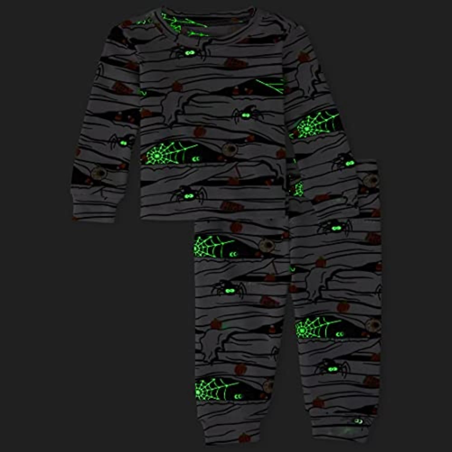 - Top features allover mummy and candy print that glows in the dark; styled with rib-knit crew neck and banded sleeve cuffs