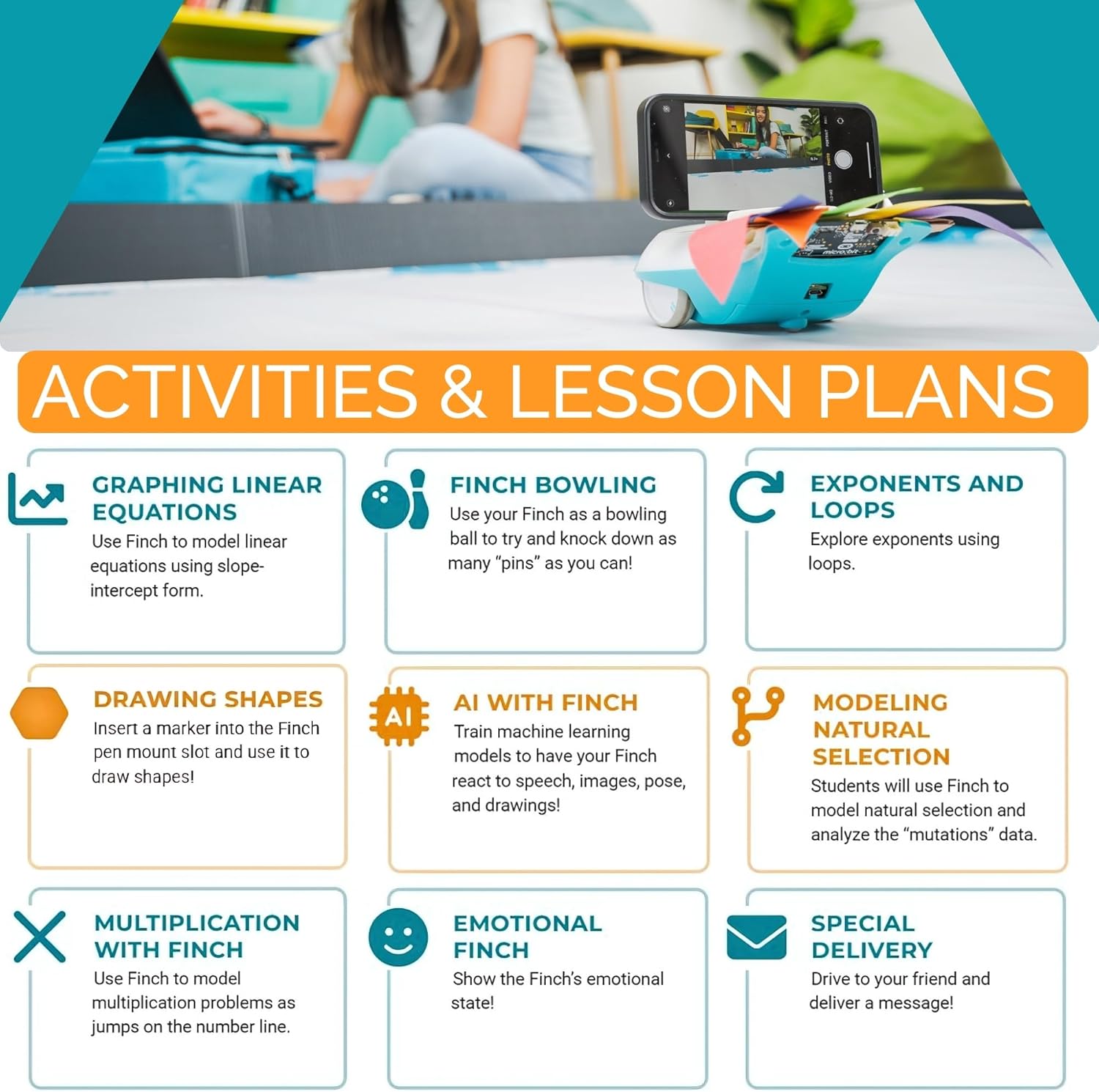 - CLASSROOM-READY: Designed with educators in mind, the Finch coding robot offers 30+ free tutorials, Python coding lessons, and professional development courses. This programmable robot for kids aligns with CSTA & ISTE standards, making it an ideal STEM toy for classrooms. With micro bit integration, itβs perfect for teaching coding for kids 5-7, robotics, and Python coding for beginners in an engaging way.
