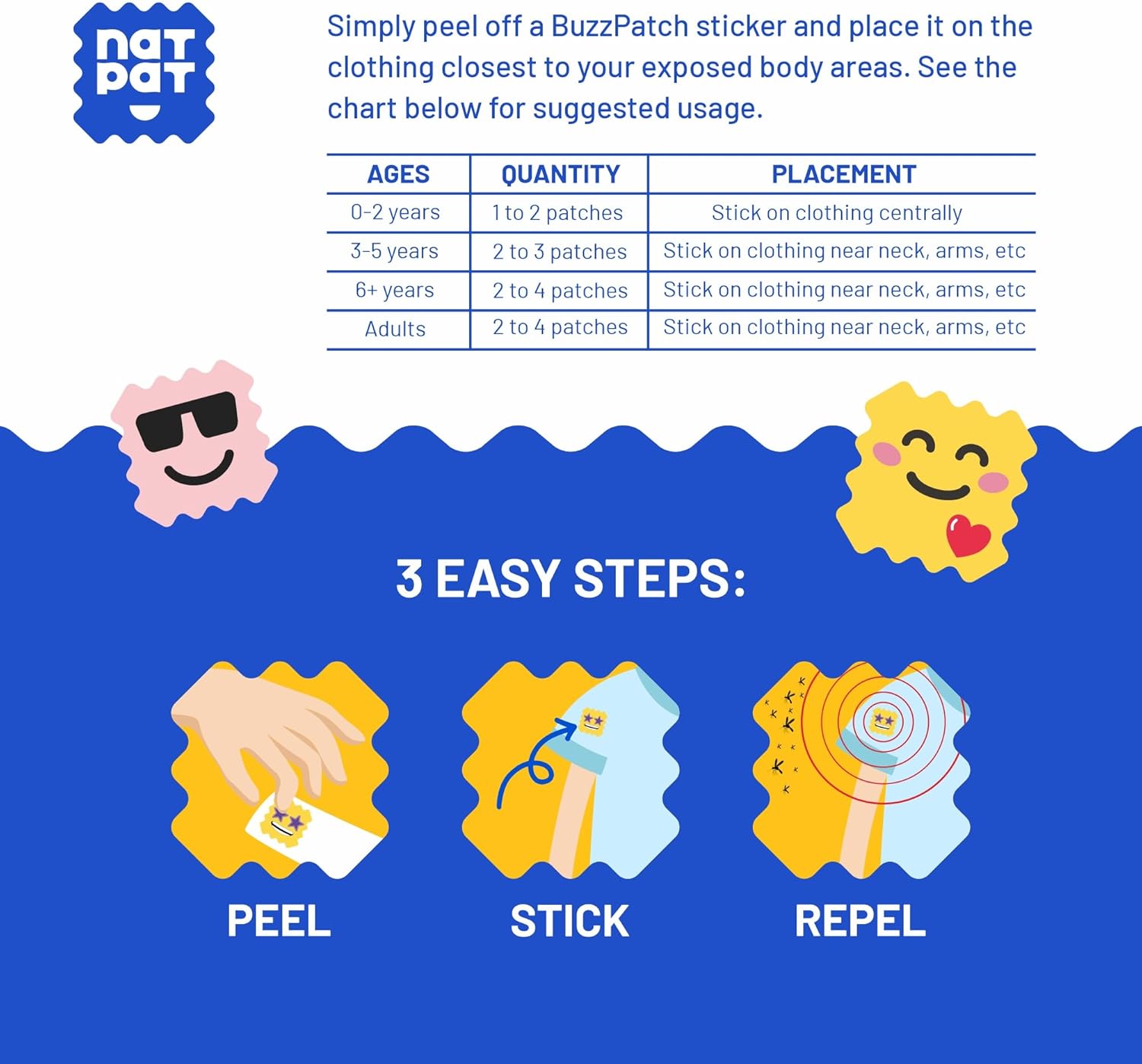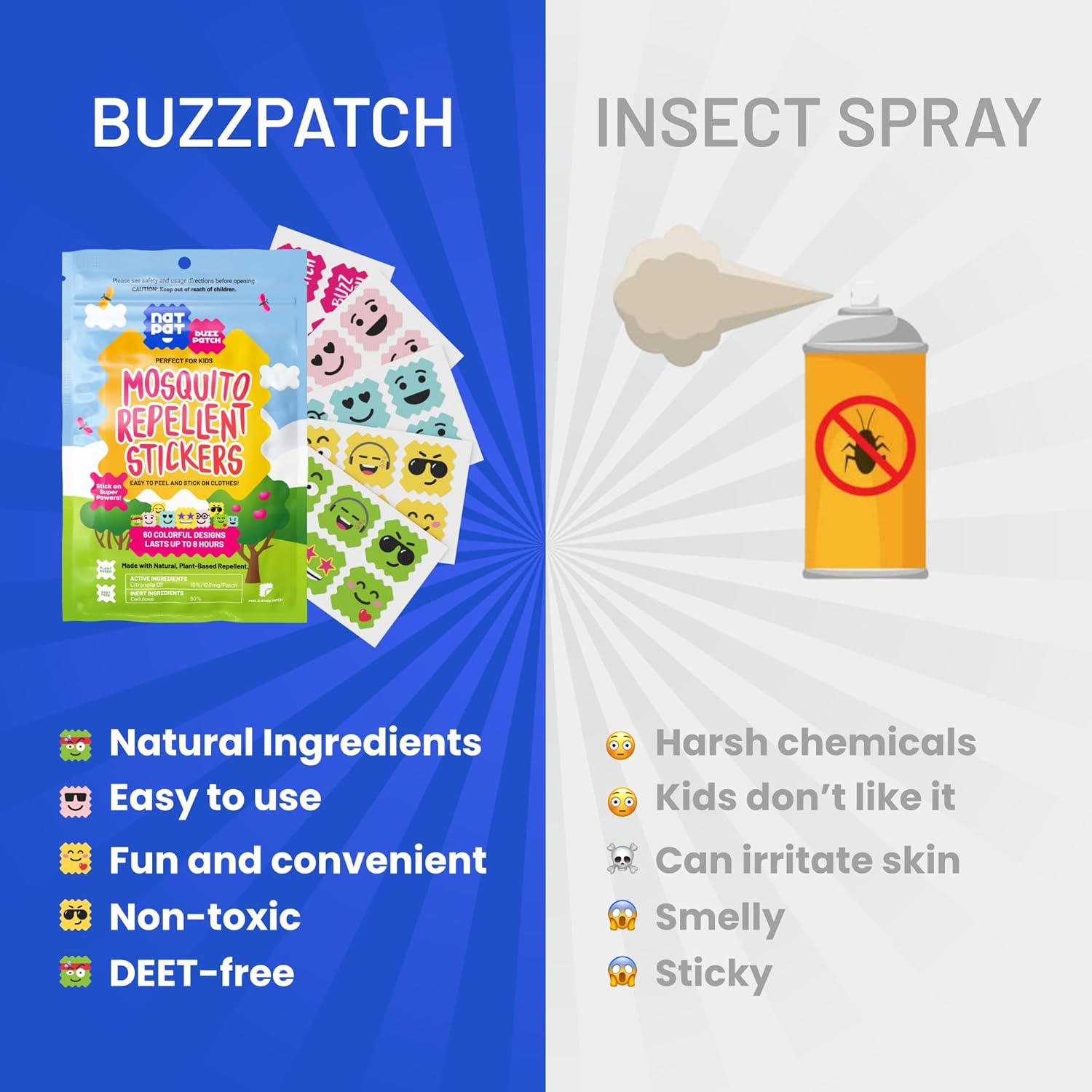 - SAFE AND EFFECTIVE: Created with you and your kids in mind. This mosquito sticker is made with all natural, plant-based ingredients. BuzzPatch is non-toxic and DEET free and uses the most effective and safe essential oil combination.