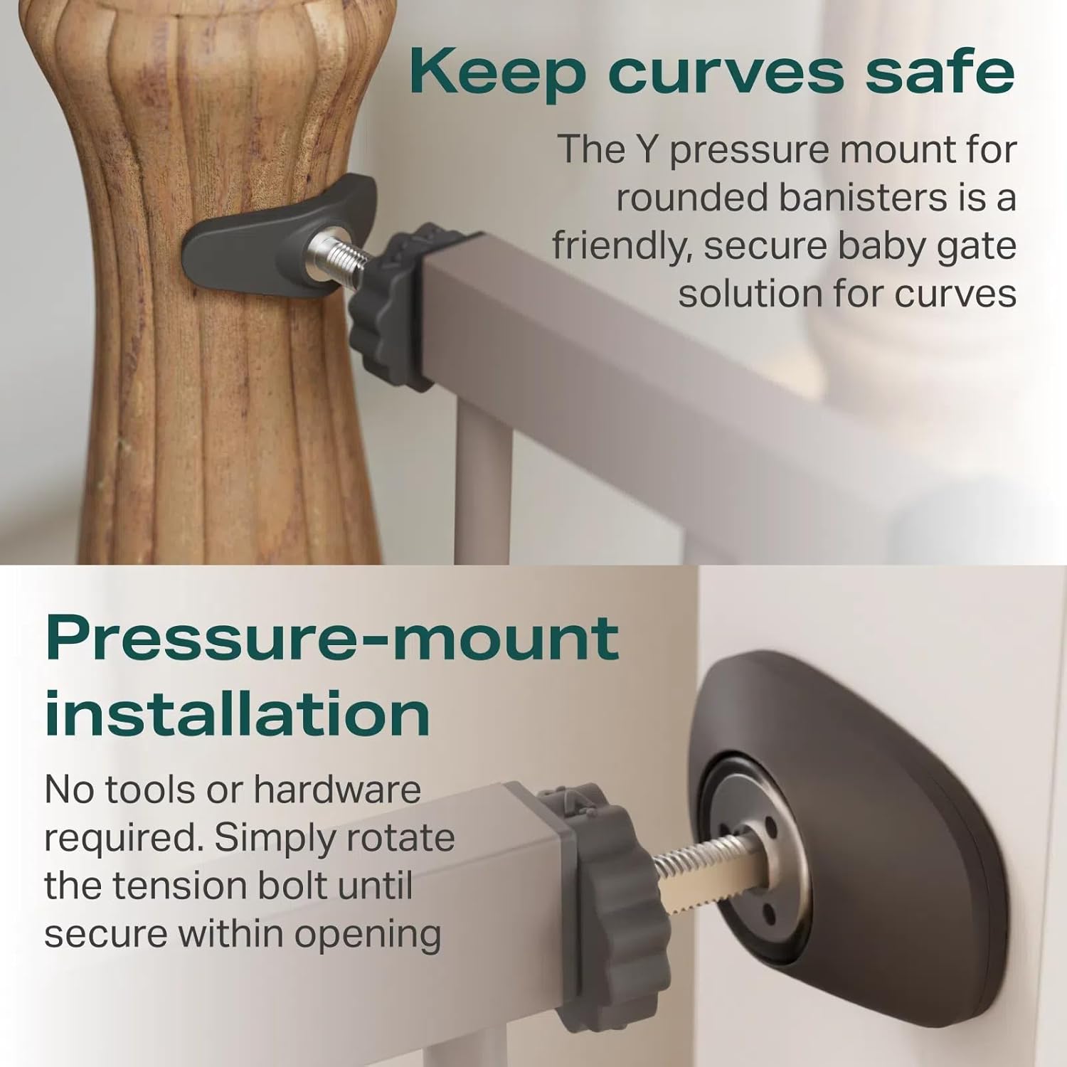 - 【Easy to Install】Simple pressure mounting can be done in just 10 minutes with no tools required, making it perfect for stairs, hallways, doorways, and open spaces