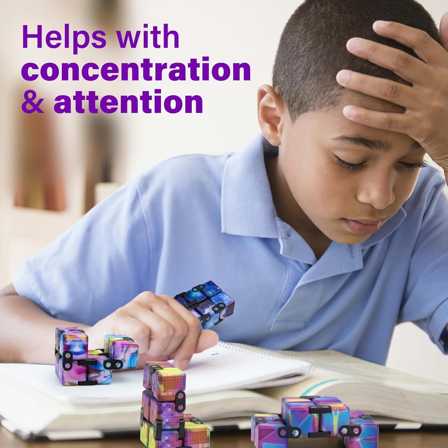 - STAY FOCUSED– Knee shaking, pen clicking, popping bubble wrap but these movements can drive your collogues and friends aloof. Use of this gadget. It also improves your attention while studying, working or brainstorming by a simple invert and fold. It's a relaxing, noiseless, and compact tactile sensory never ending polyhedron.