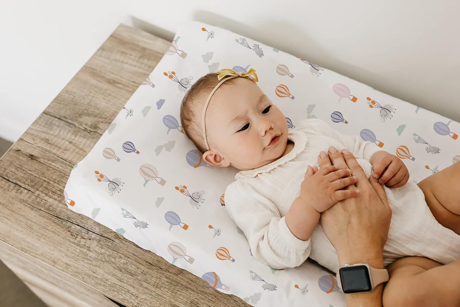 TotAha Premium Stretchy Changing Pad Covers (2-Pack)-Hypoallergenic, Silky Comfort, Buttery Soft, Calming Effect, All-Season Jersey-Knit 32 X 16 X 5'' Deep Pocket (Air Balloon & Sailboat)
