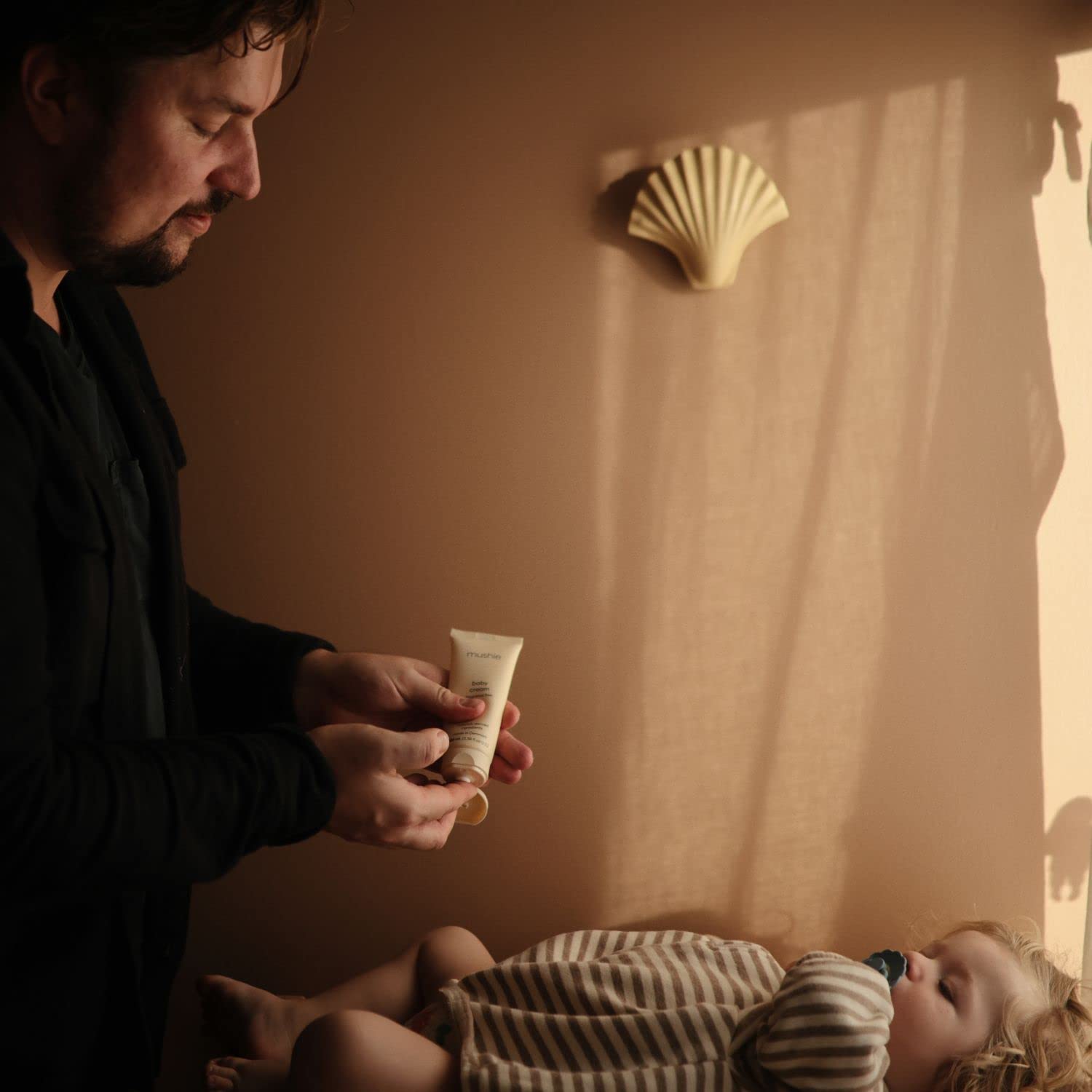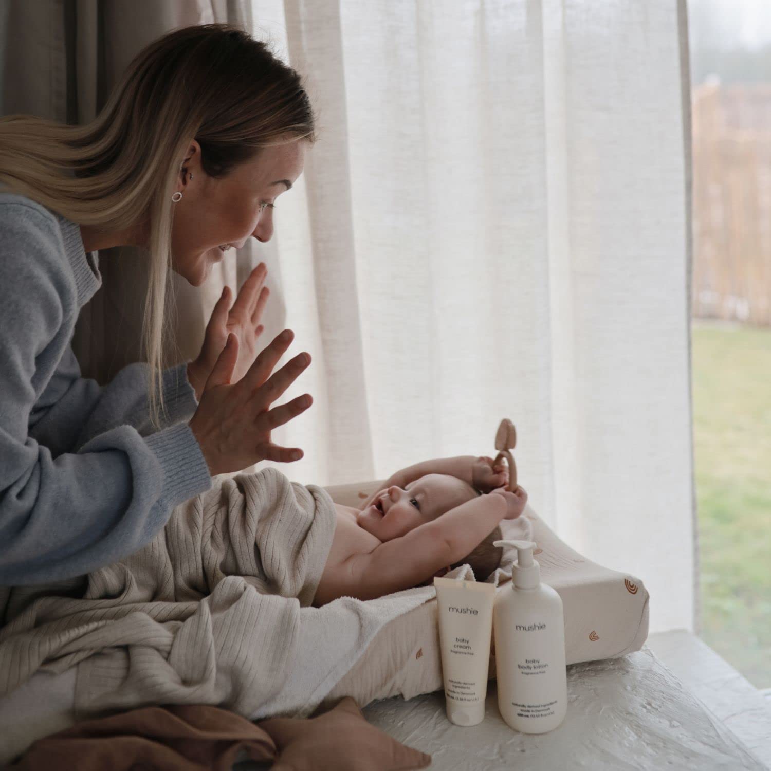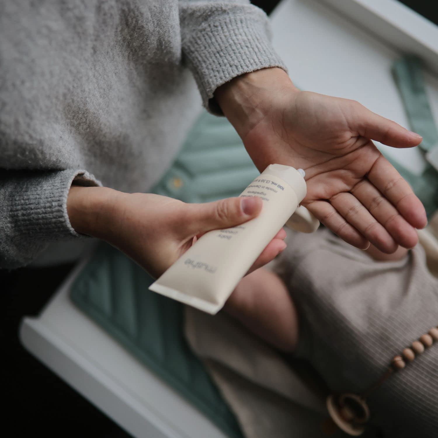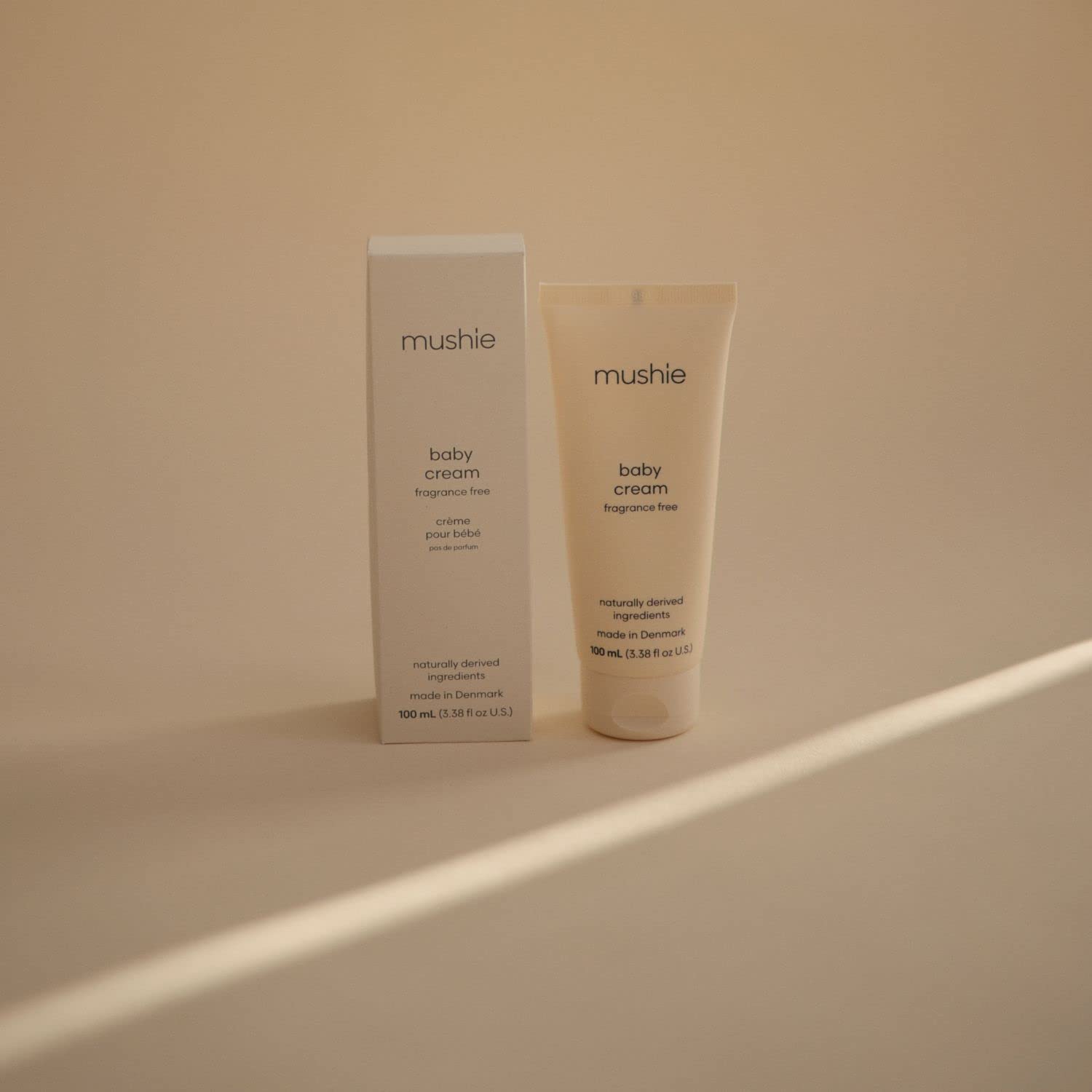 - Mushie Baby Cream provides a protective barrier that prevents the skin from drying out and soothes. Gentle enough for everyday use, this all-purpose cream is suitable for areas of dry, chafed skin. Our cream moisturizes, softens and protects from environmental elements.
