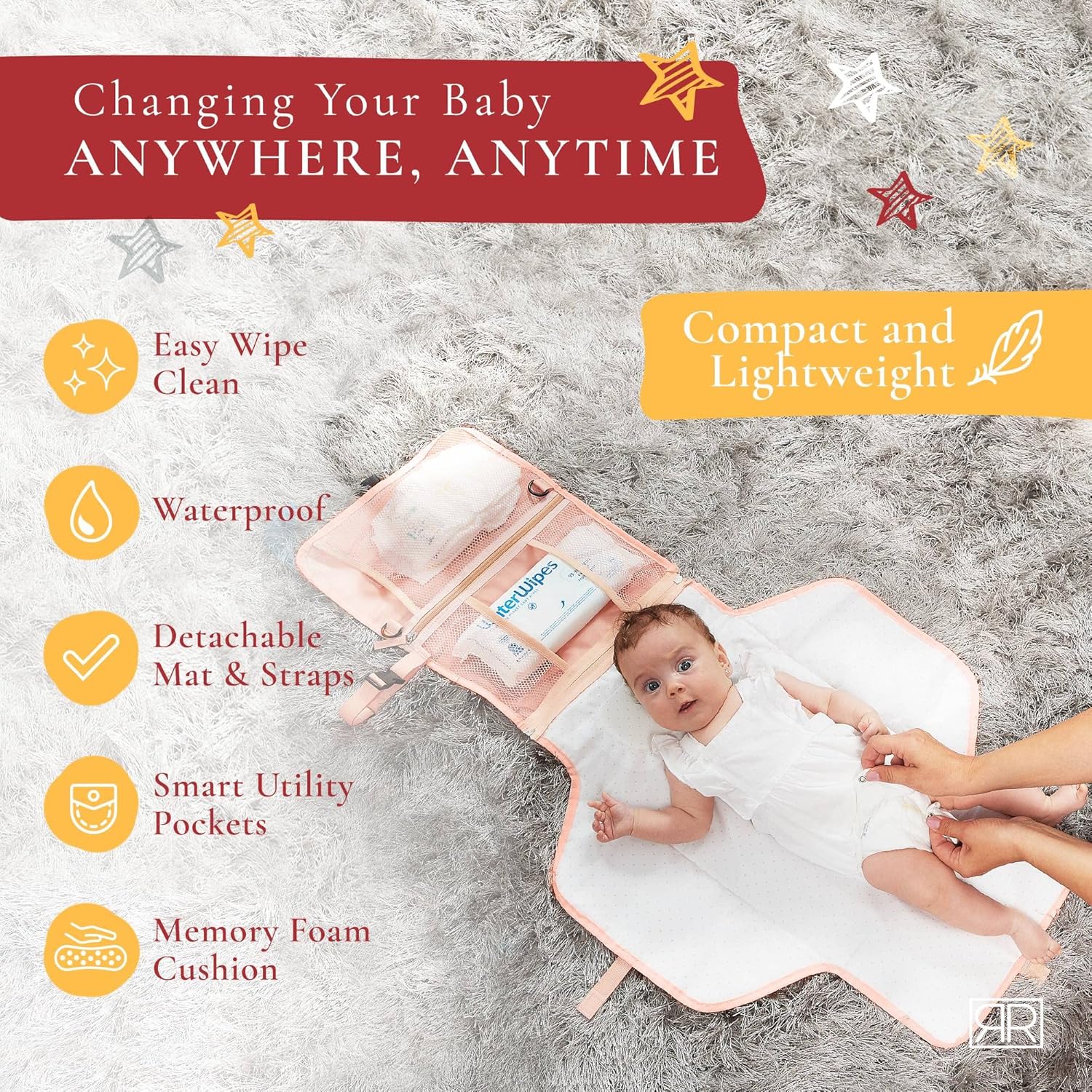 - 👶SAVE MONEY & KEEP YOUR BABY CLEAN AND COMFY - Stop wasting money on disposable diaper changers and take your waterproof Portable Changing Pad that easily wipes clean and makes baby diaper changes easier—no matter where you are. Our Changing Pad Portable is made of premium materials (no smells, no skin irritation) with a high-quality padded surface. It features a comfortable MEMORY FOAM pillow, protecting your baby's head. WE VALUE YOUR PRIORITIES!