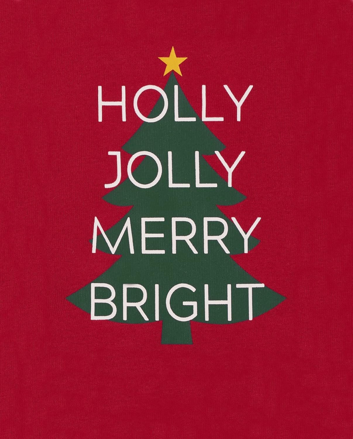 - PAJAMA TOP — Features long sleeves, rib-knit crew neck and sleeve cuffs and 'Holly Jolly Merry Bright' with Christmas tree graphic design at front