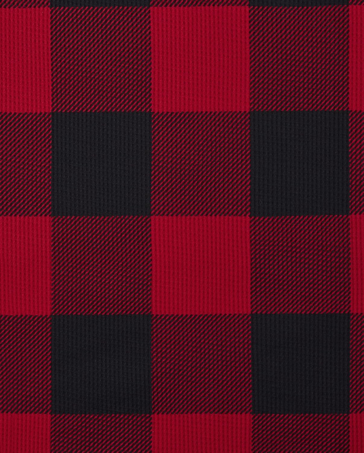 - PAJAMA TOP — Features long sleeves, rib-knit crew neck and sleeve cuffs and allover buffalo plaid