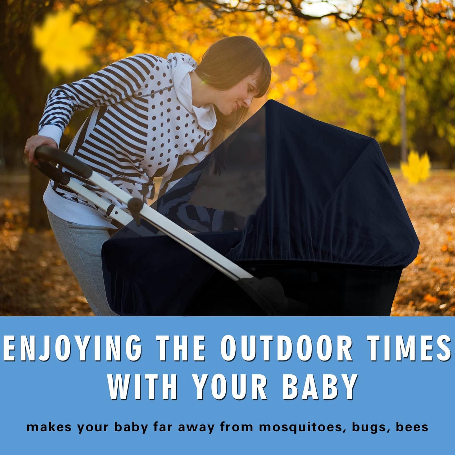 - ✔ Economical & Endurable: The stroller bug net is made of Polyester mesh material, tough and elastic, no hook yarn. Exquisite seaming prevents the mesh threads from coming off to provide a longer life.