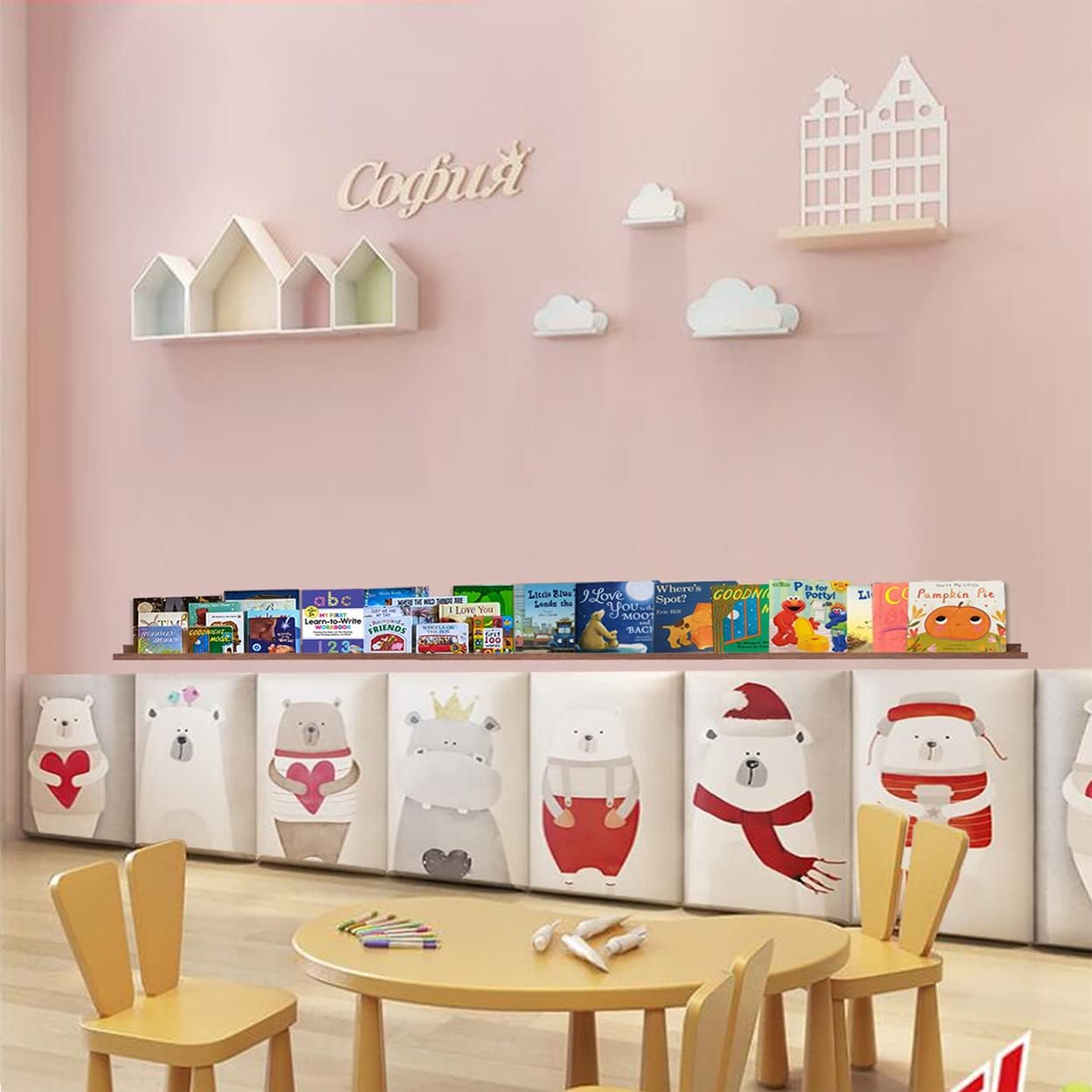 - [Perfect Gift]: These well-made and good-looking floating shelves not only are ideal gifts for moms and children to display and storage books, but also perfect for office, kitchen and bathroom use. They can also be photo ledge for easily displaying your favorite pictures frames and photo albums. So they are ideal birthday & Christmas gifts.