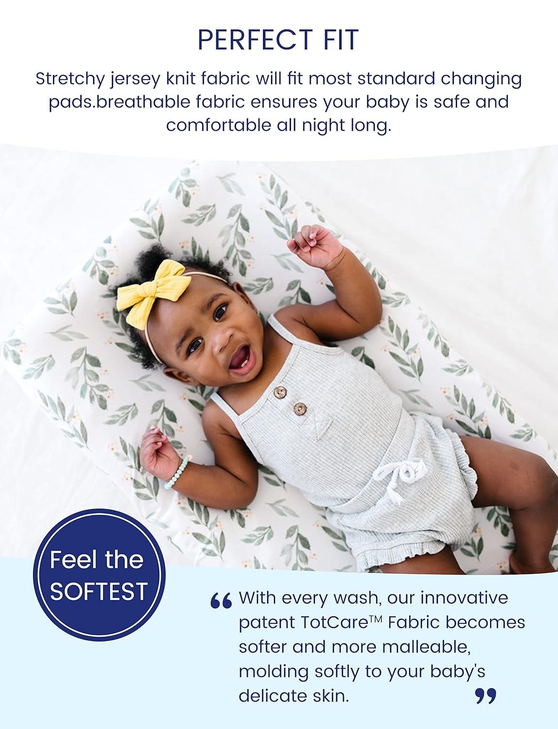 - SOFTER FOR LONGER: With every wash, our patent TotCare Fabric becomes softer and more malleable, molding softly to your baby's diaper changing mattress and around your loved little one's skin. No more one-time use. Use it. Wash it. And love it. 100,000+ wash greater; No deformation, no damage, no fading.
