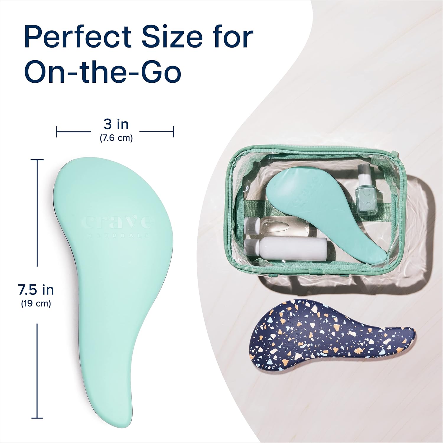 Crave Naturals Glide Thru Detangling Hair Brushes for Women - Detangler Brush for Curly or Straight, Wet or Dry Hair - Gentle on Tangles Comb - 7.5x3-Inch, Turquoise and Terrazzo (Pack of 2)