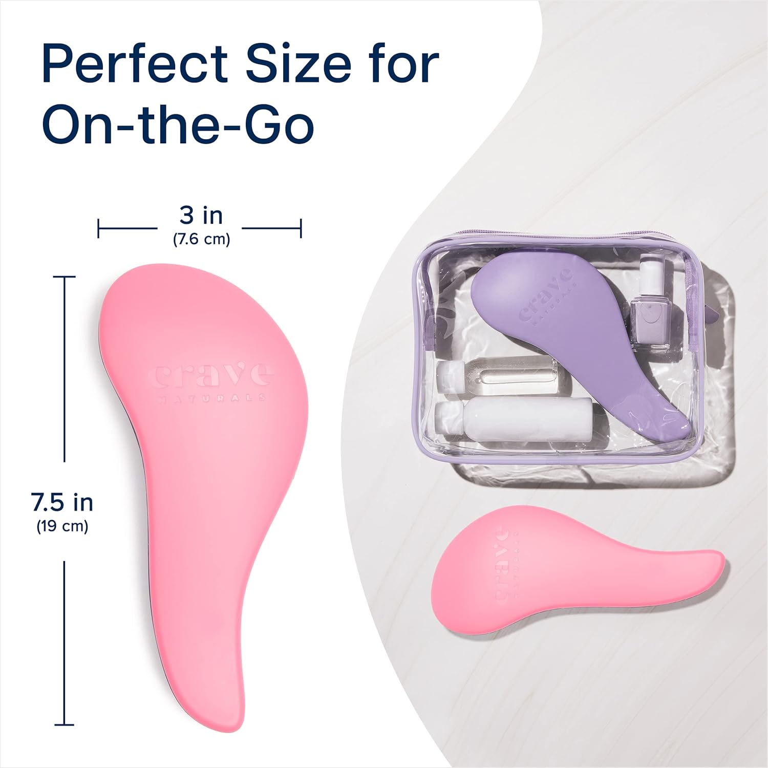 Crave Naturals Glide Thru Detangling Brush for Adults and Kids - Detangler Brush for Curly or Straight, Wet or Dry Hair - Gentle on Tangles Hair Comb - 7.5x3-Inch, Pink and Purple (Pack of 2)
