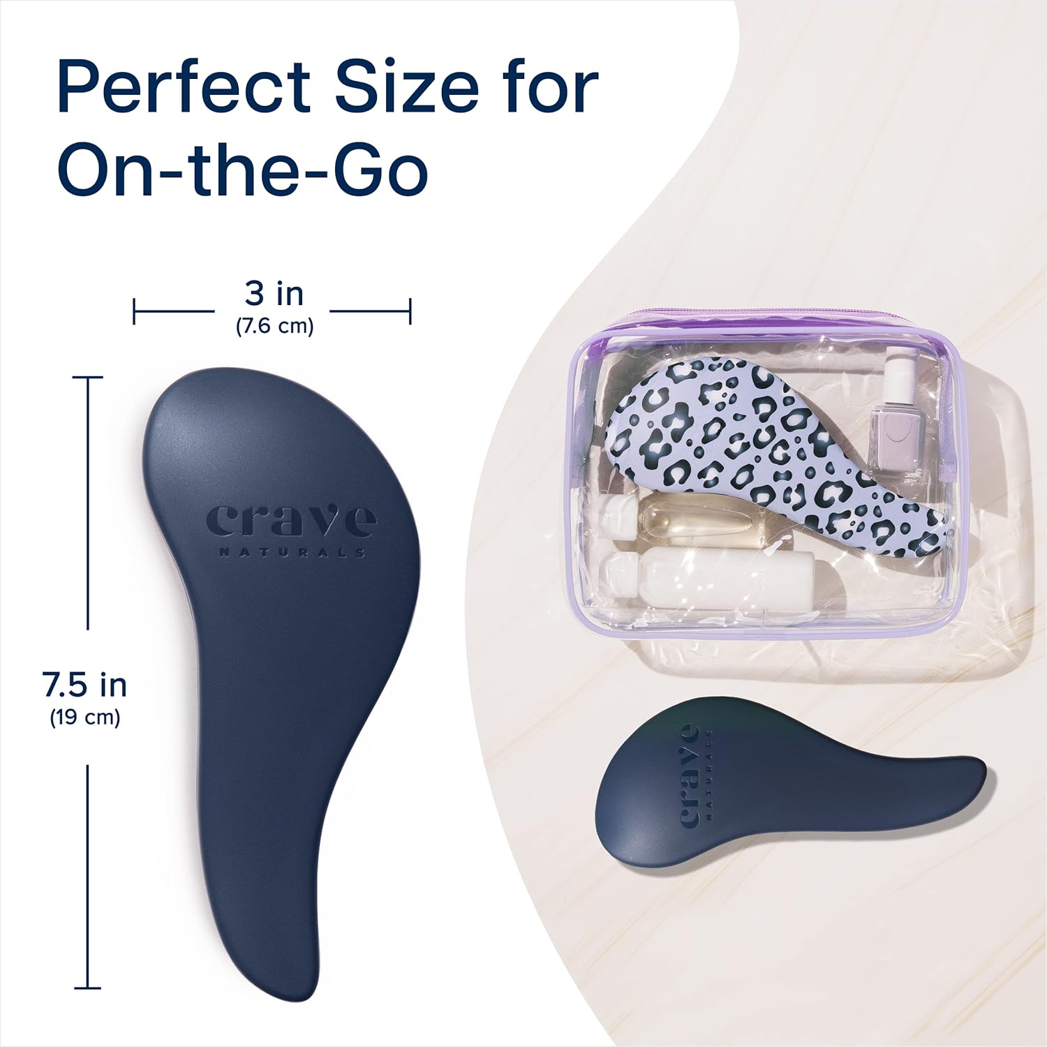 Crave Naturals Glide Thru Detangling Hair Brush for Adults and Kids - Detangler Hairbrush for Curly or Straight, Wet or Dry Hair - Gentle on Tangles Comb - Navy Blue and Blue Cheetah (Pack of 2)