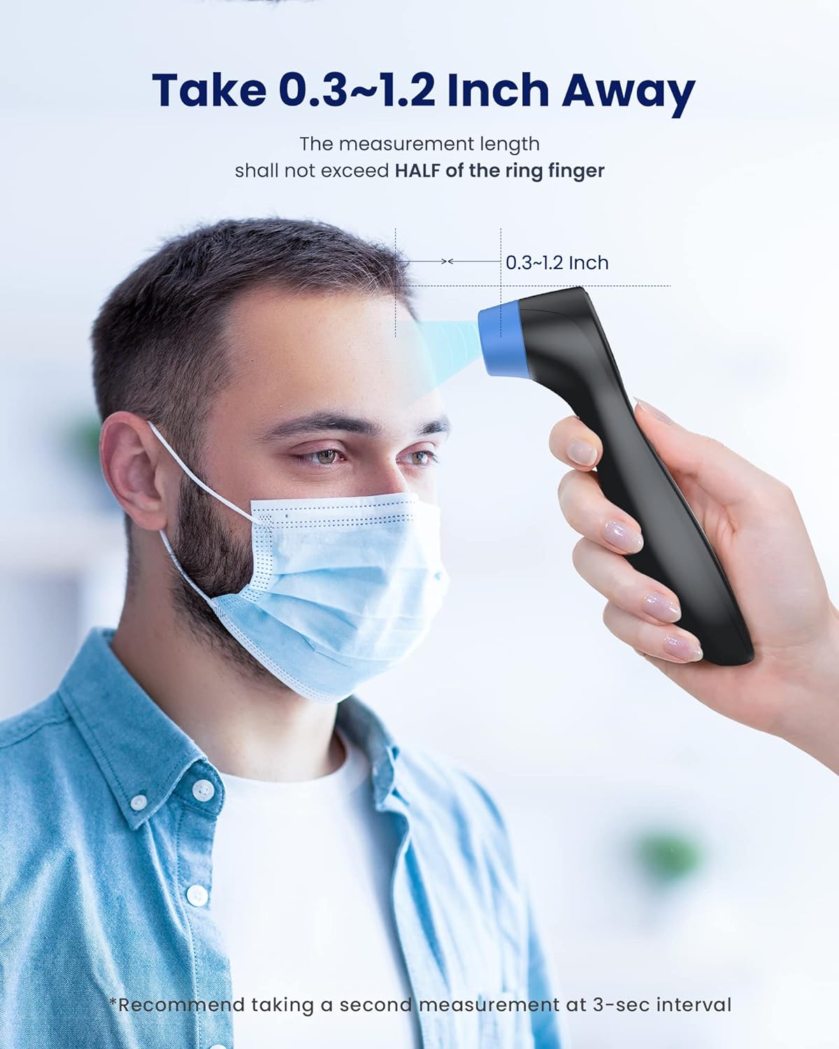 - WHAT YOU GET - 1 x Touchless Infrared Thermometer, 1 x User Manual, 2 x AAA Batteries. You will also get 12 months replacement from the date of purchase and 24-7 friendly customer service