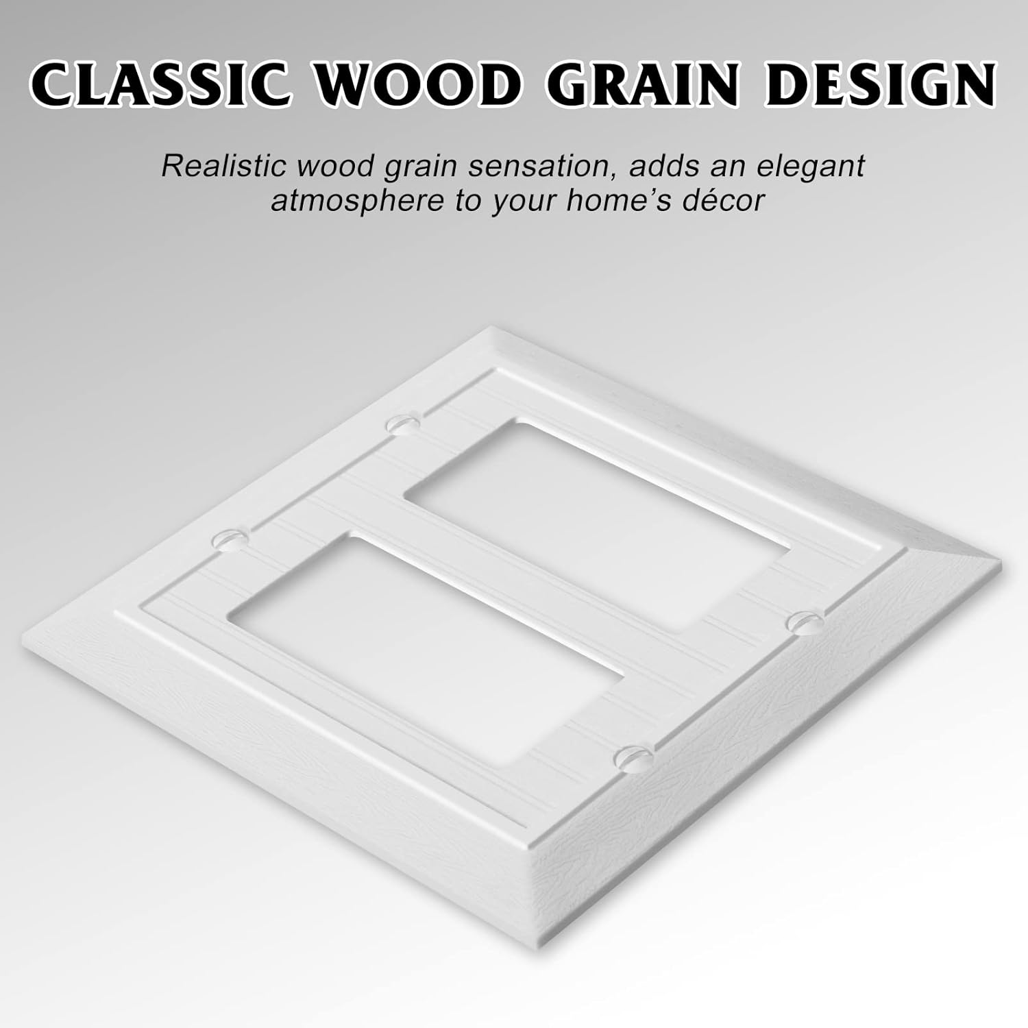 Modern Decorative Wall Plate Switch Plate Outlet Cover, Vintage Retro Wood Grain Design (Double Decorator-4 Pack, White)