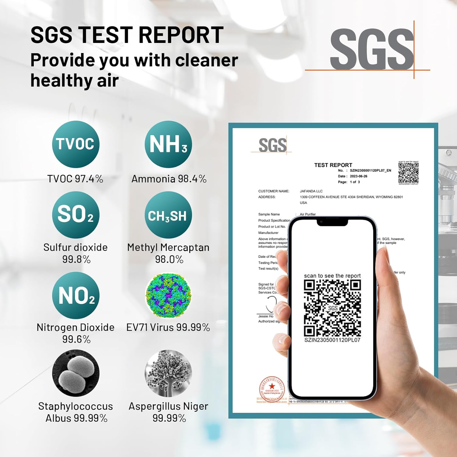 - Safeguard Your Air Purifier with Genuine Jafanda Filters: Maximize performance and protect your investment with authentic Jafanda replacements (Search ORIG Filter-B0B74KYX8H, Odor Air Filter-B0C2Y9TPZ1, VOCs Air Filter-B0BTGGVV36). Don't risk inconsistent filtration or potential damage from off-brand filters.