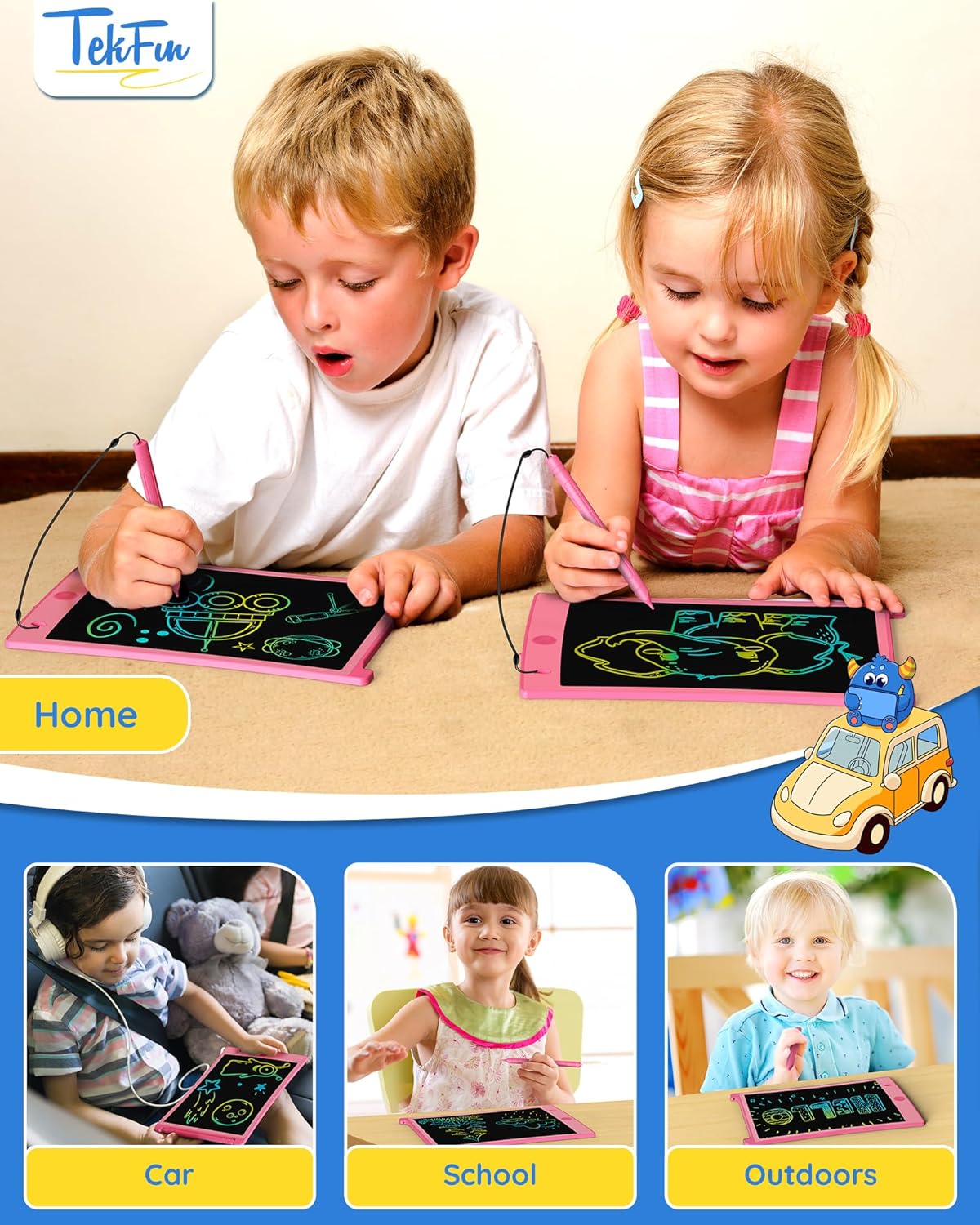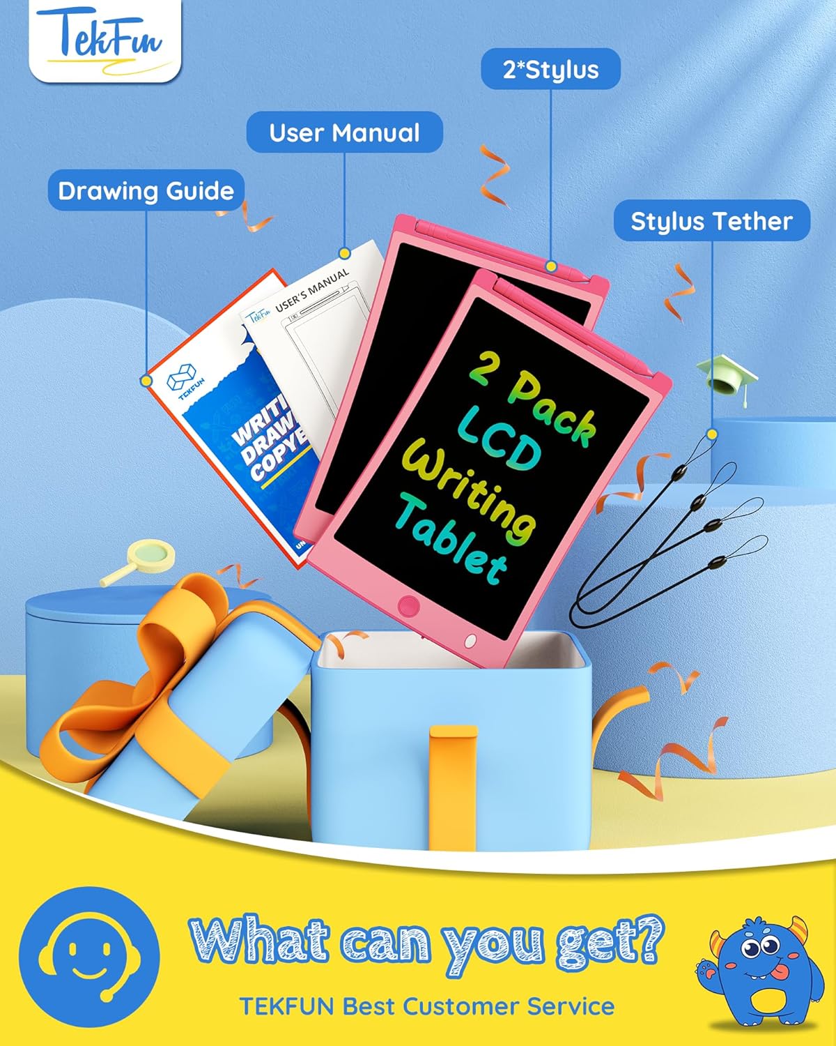 - Perfect Gift: TEKFUN's writing tablet is the perfect toy gift for kids of all ages. Whether it's for a birthday, Christmas, Easter, Valentine's Day, or back-to-school supplies, this multi-use toy is suitable for 3-7-year-old boys and girls, as well as teens and adults.