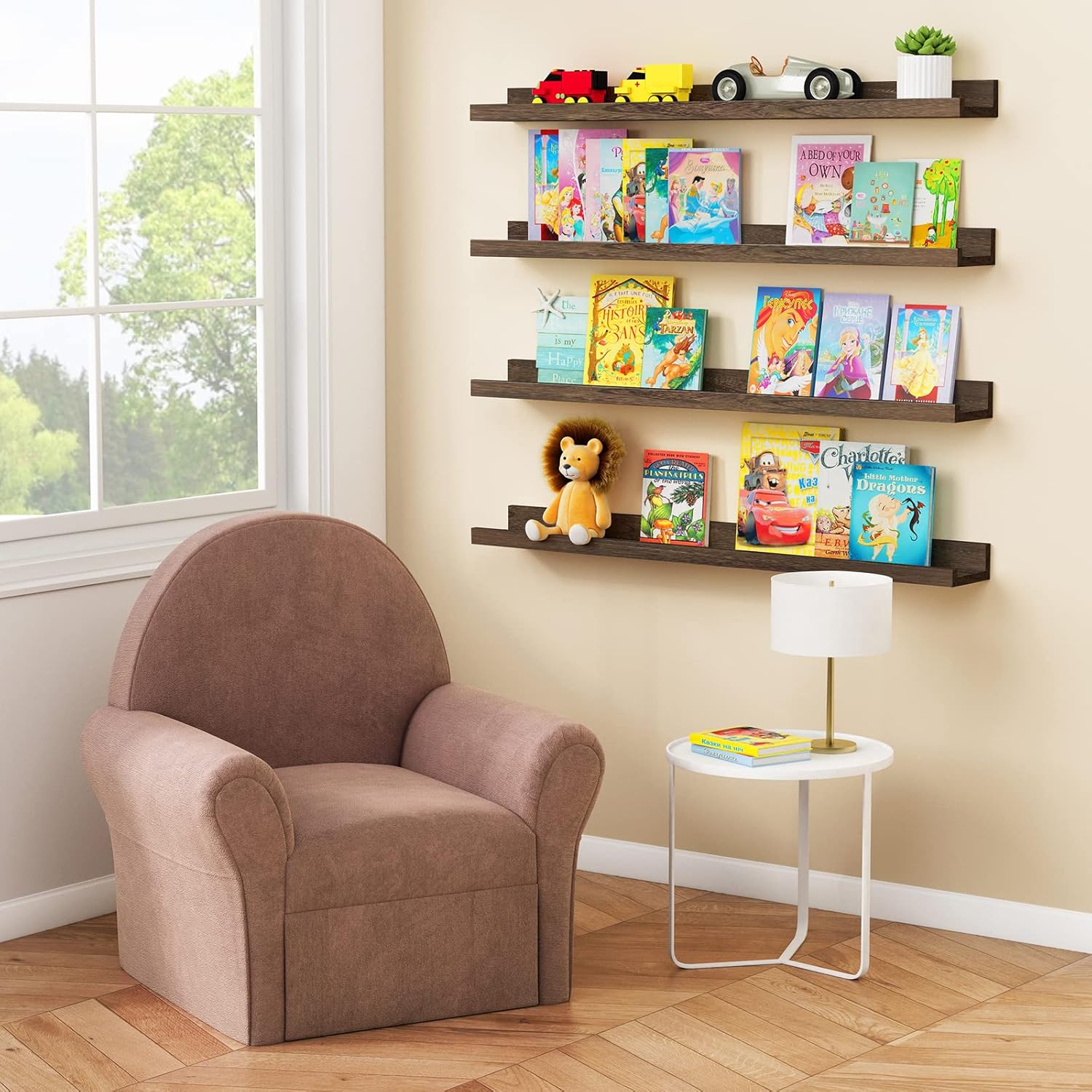 Forbena Rustic Wood Wall Shelves for Living Room Set of 4, 36 Inch Long Floating Shelves with Lip, Large Farmhouse Wooden Picture Ledge Shelf for Bedroom Office Hallway Photo Frames (Dark Brown)