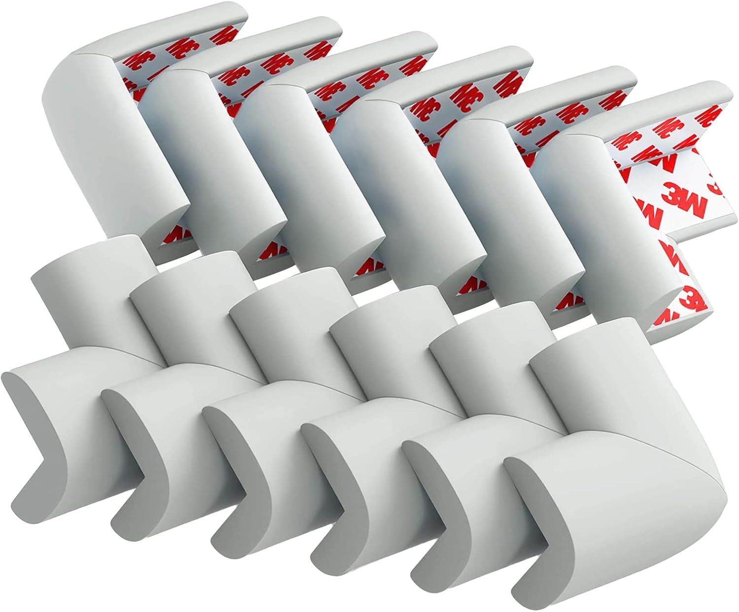 12 Pack Corner Protector Baby Proofing Corners and Edge Guards, Soft Safety Pre-Taped Rubber Foam Furniture Bumper for Fireplace, Table, Stair, Cabinet (Gray)