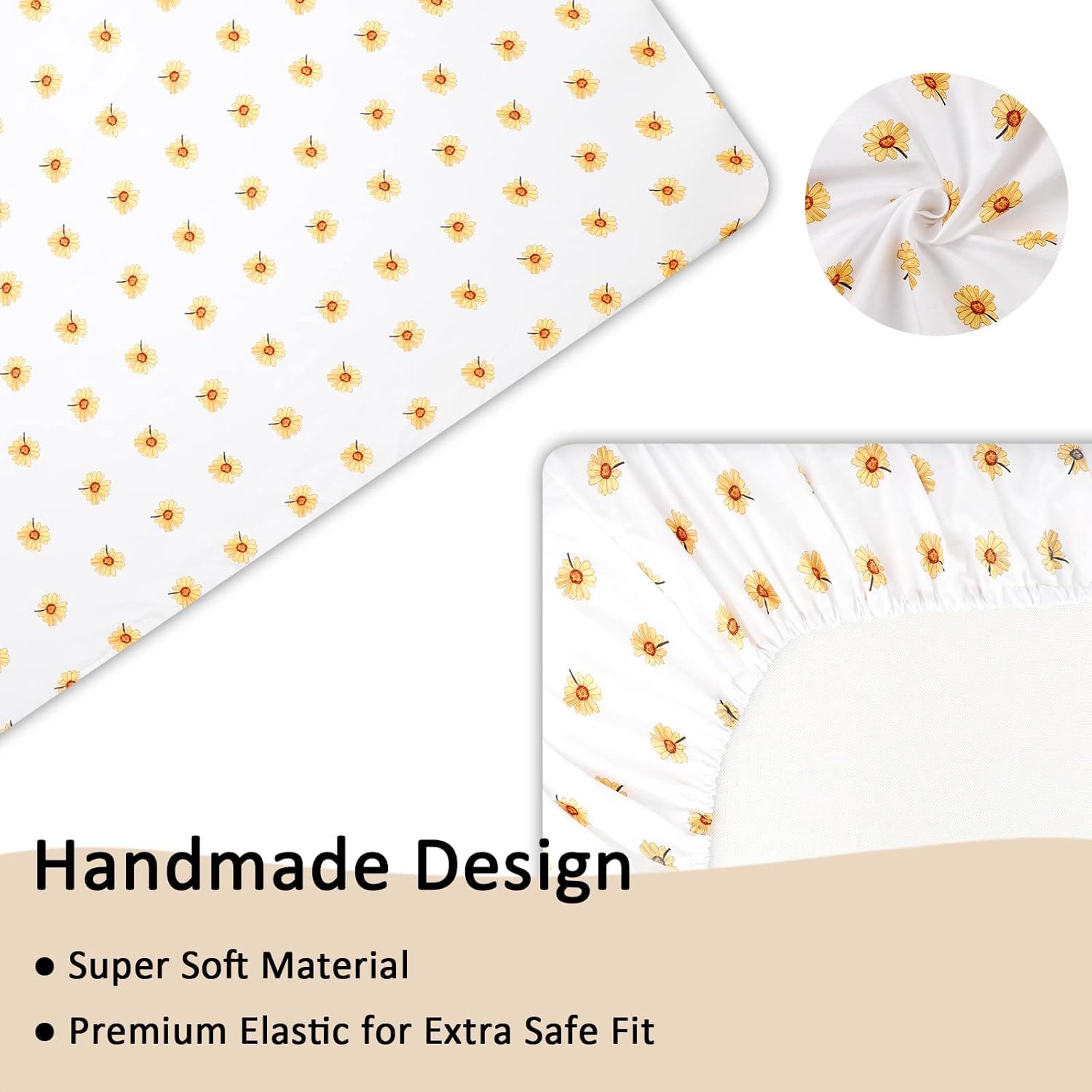 - SECURE: Our sheets have elastic around them to make it easier to secure and protect the mattress. The matching bed skirt makes the baby's bed more beautiful, and the diaper bag can hold the baby's sundries