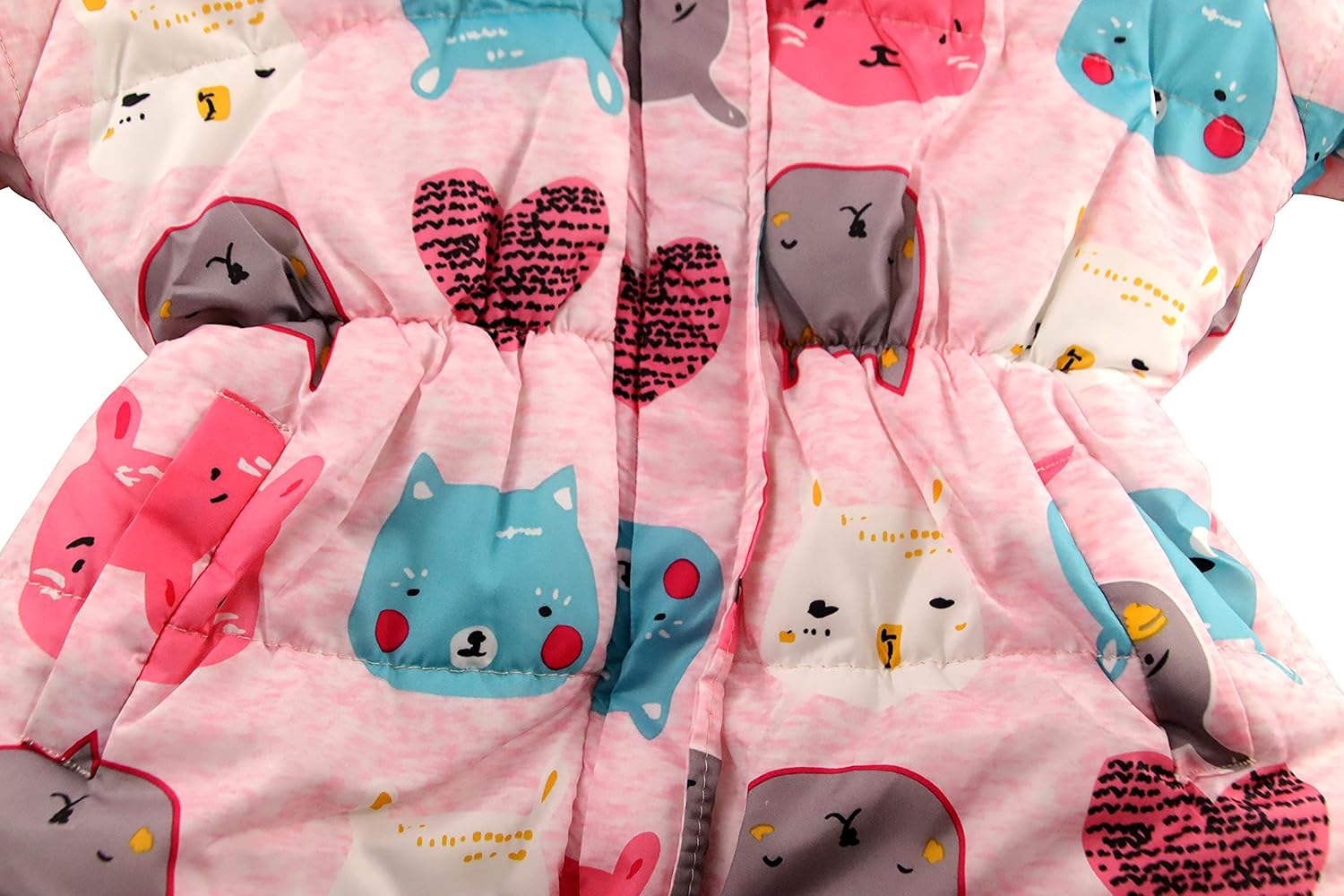 - Baby Girls Pattern Winter Clothes : fabric polyester fabric and down filled cotton,Lightweight Warm light material,Girls hooded down jacket with faux fur hood