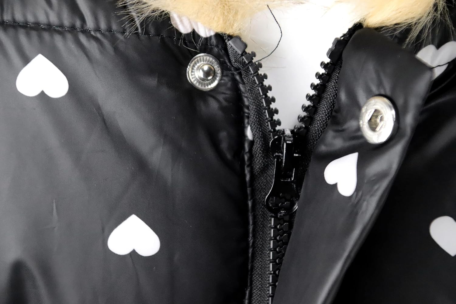 - Baby Girls Pattern Winter Clothes : fabric polyester fabric and down filled cotton,Lightweight Warm light material,Girls hooded down jacket with faux fur hood