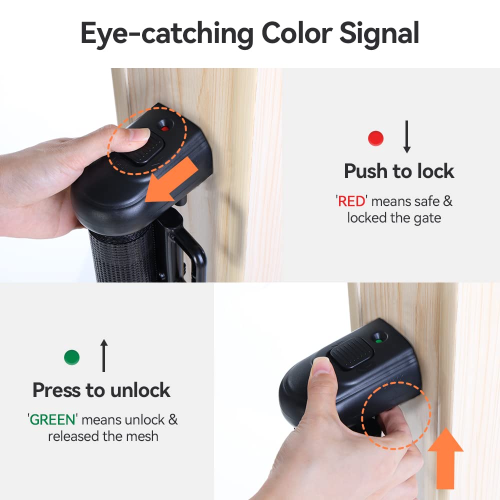 - Noiseless retractable design - The technical upgrade reduces the friction of the gate while also reducing the sound of retracting the mesh. We are committed to creating a safe, closed, and quiet environment for your baby and pets.