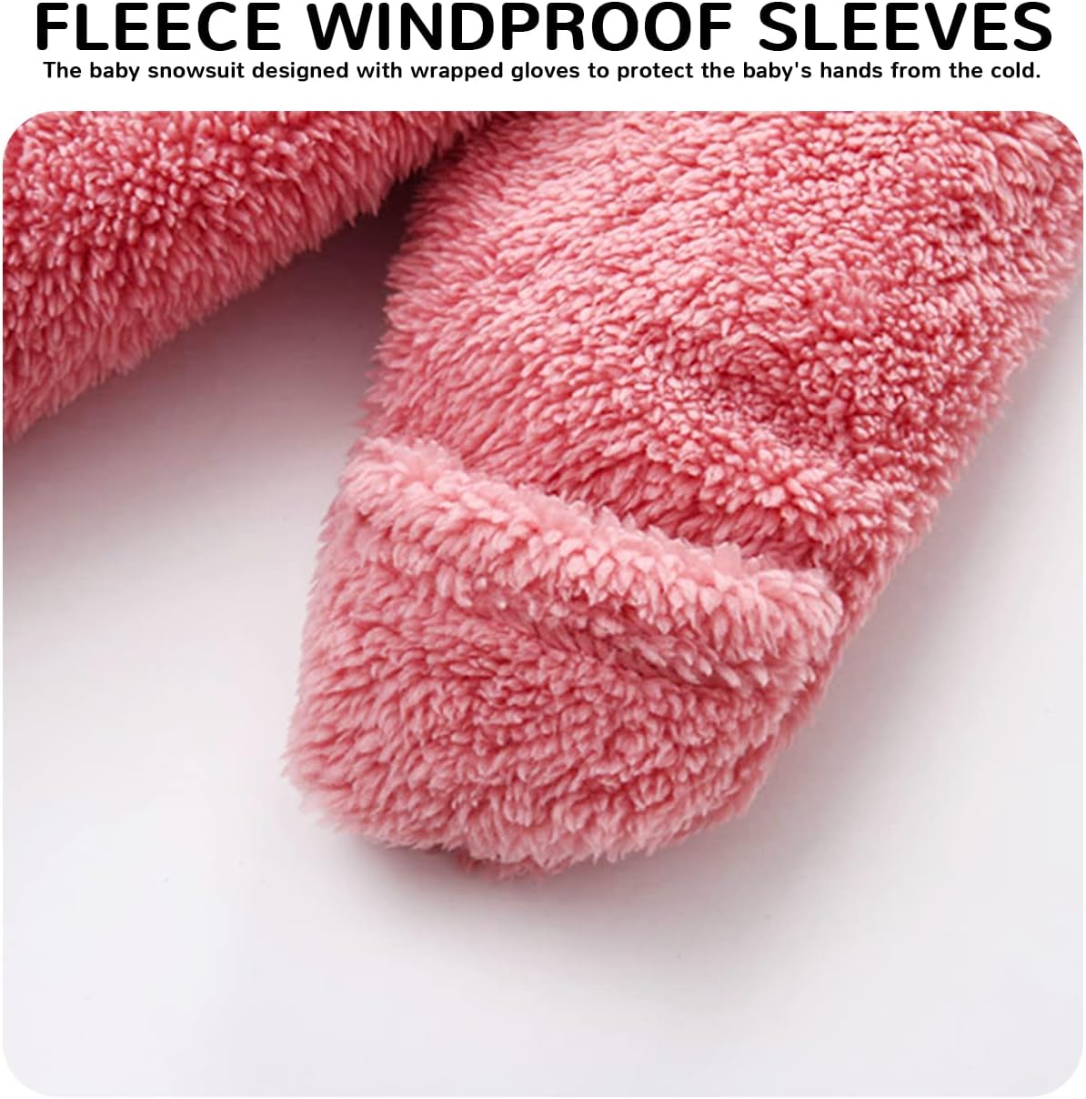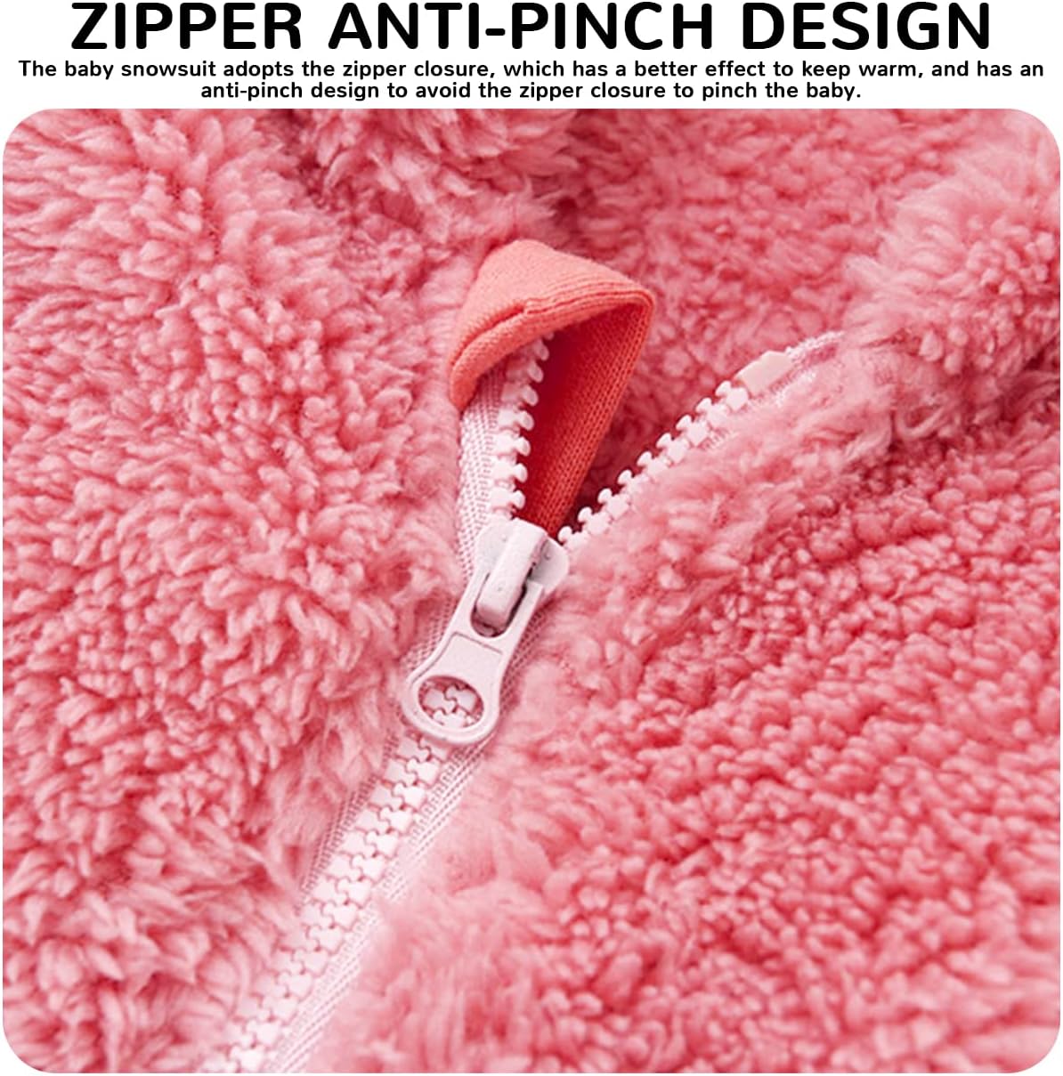 - ??Material: This baby snow suit made of high quality polyester fiber, double lining, fine polyester fiber cares for baby's delicate skin. The newborn winter outfit hoodie whole body jumpsuit design, keeps the baby's head and ears inside and warm when outing. The toddler boys & girls snow suit accompanies the baby through the cold winter.