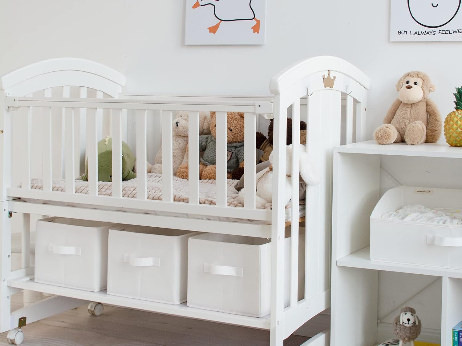 - The storage baskets for shelves are collapsible for compact storage when not in use.