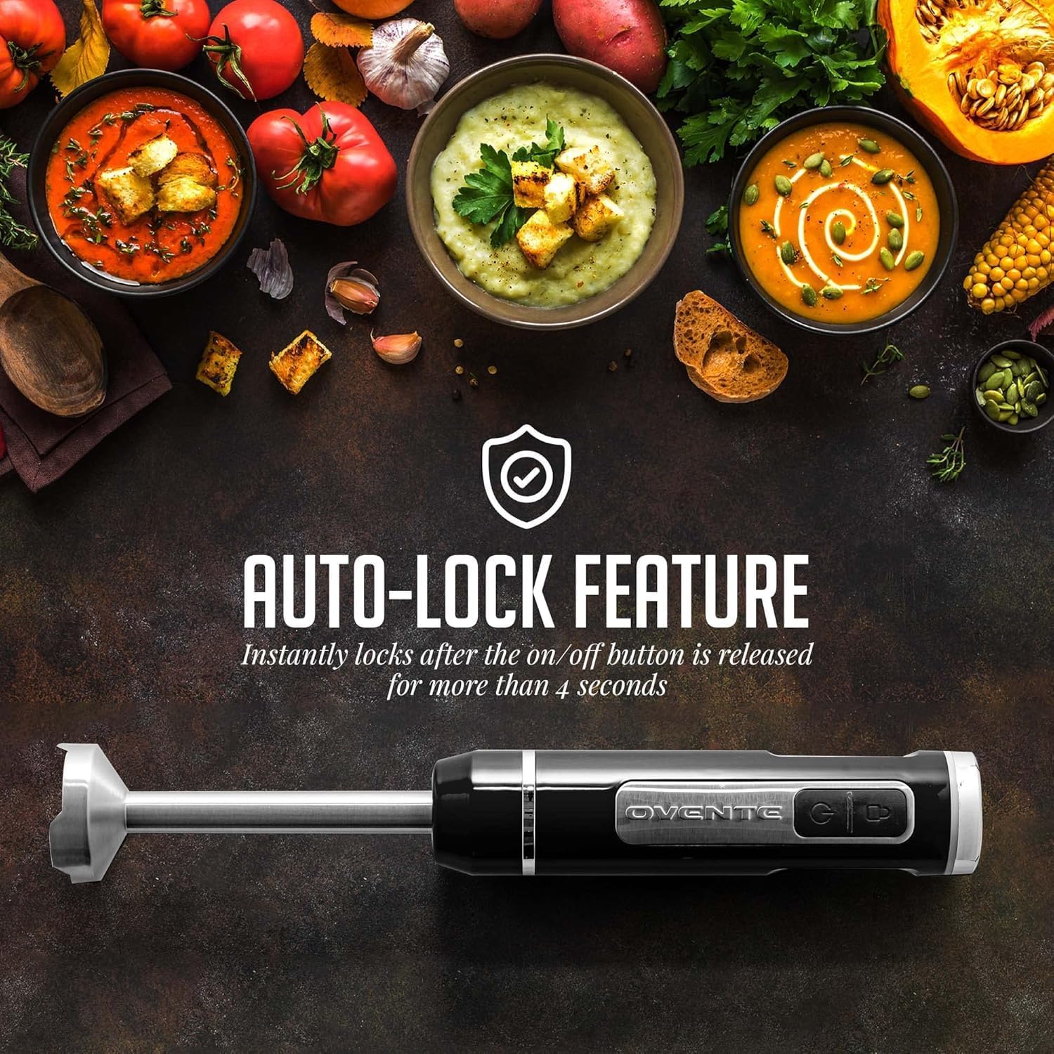 OVENTE Cordless Immersion Hand Blender, Rechargeable Handheld Portable Stick Mixer with 8 Mixing Speed Option, One-Touch Control and Stainless Steel Blades for Smoothies, Shakes or Soups, Black HR781B