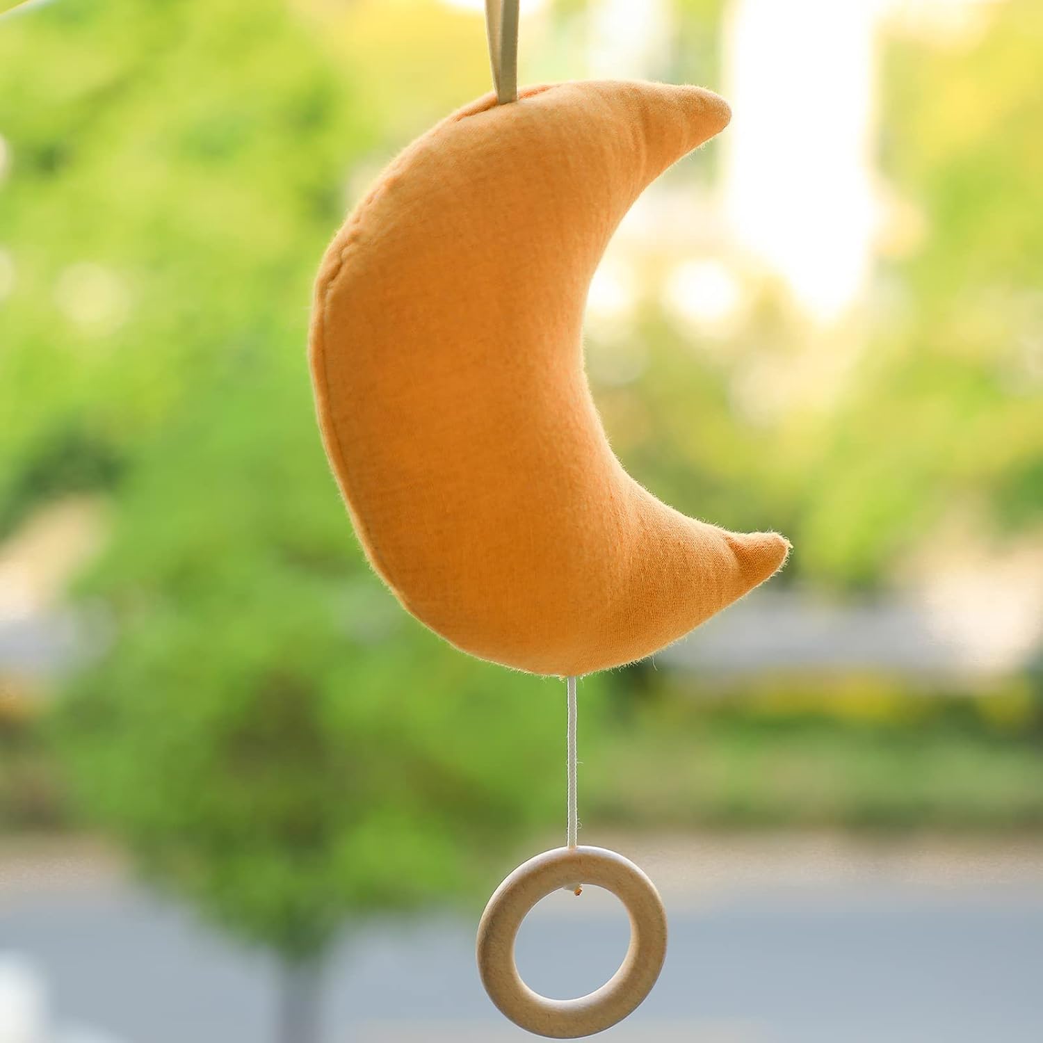 - š DEVELOPMENTAL CAUSE AND EFFECT - No battery required. The soft moon pull musical features an enclosed mini mechanical music box that plays Brahms' Lullaby when the cord is pulled down. The cord will contract while the music is playing. Music plays approx. 1.8 mins. per tug.