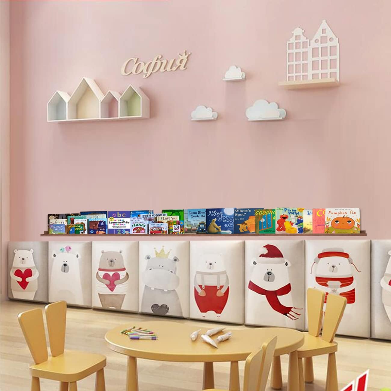 AZSKY Floating Wood Wall Shelves Light Walnut 48 Inch Long Hanging Picture Photo Ledge Shelf Rustic Modern Narrow Shelves for Wall Decor Storage and Display Nursery Book Shelves a Set of 3