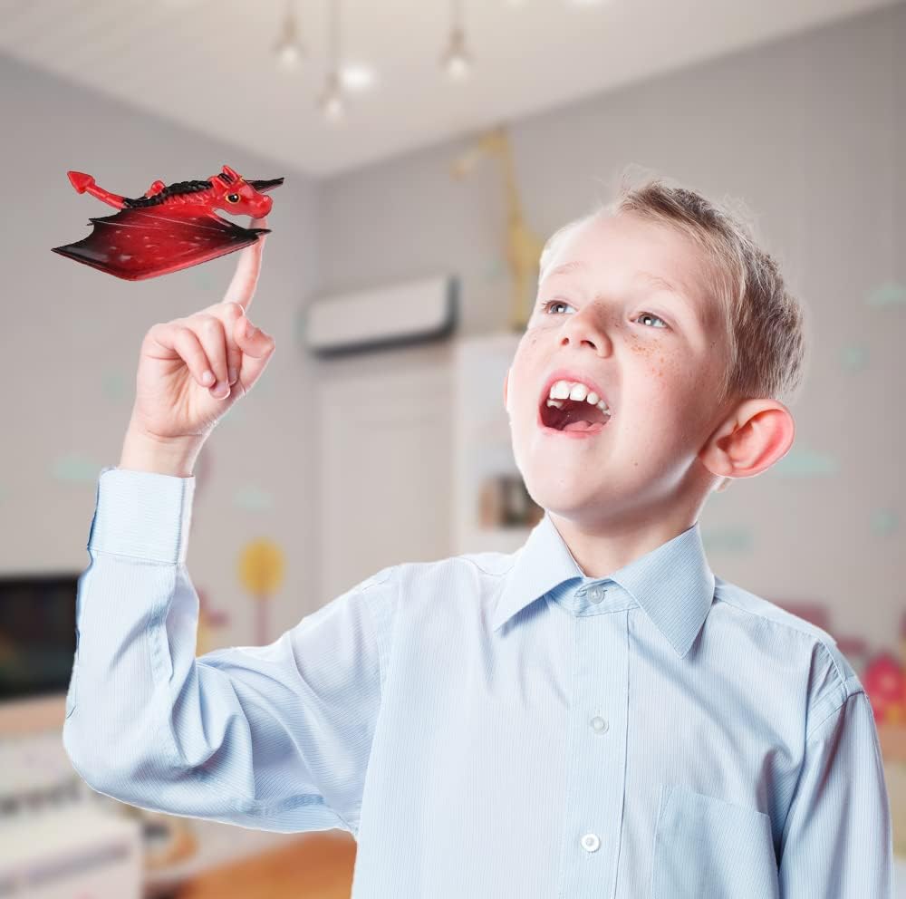 - COOL DESK TOYS: Give your desk a serving of colorful fantasy. The dragon toys have a 5” wingspan to neatly fit on most desks. And they won’t just net you compliments. Whenever you feel stress coming in, fidget with your dragon pal and feel the anxiety lift.