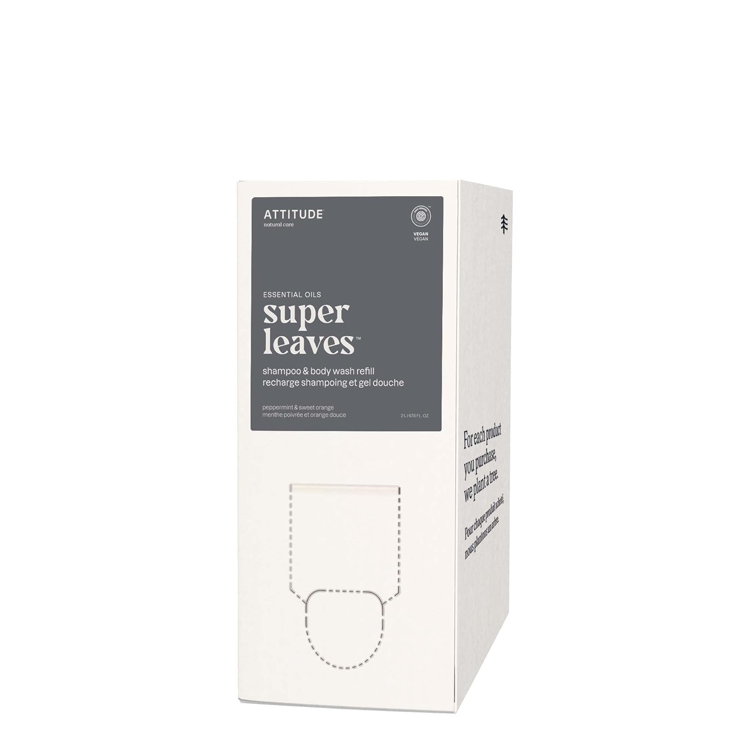ATTITUDE 2-in-1 Body Wash and Hair Shampoo, EWG Verified Shower Gel, Dermatologically Tested, Made with Naturally Derived Ingredients, Vegan Personal Care, Peppermint and Sweet Orange, 67.6 Fl Oz