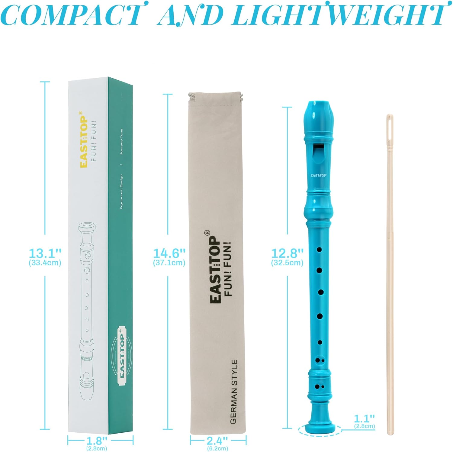 EAST TOP Soprano Recorder for Kids Beginners, 8 Hole Plastic German Fingering Flute Recorder 3 Piece with Cleaning stick, Cotton pouch, Fingering Chart, Colorful box (Blue)