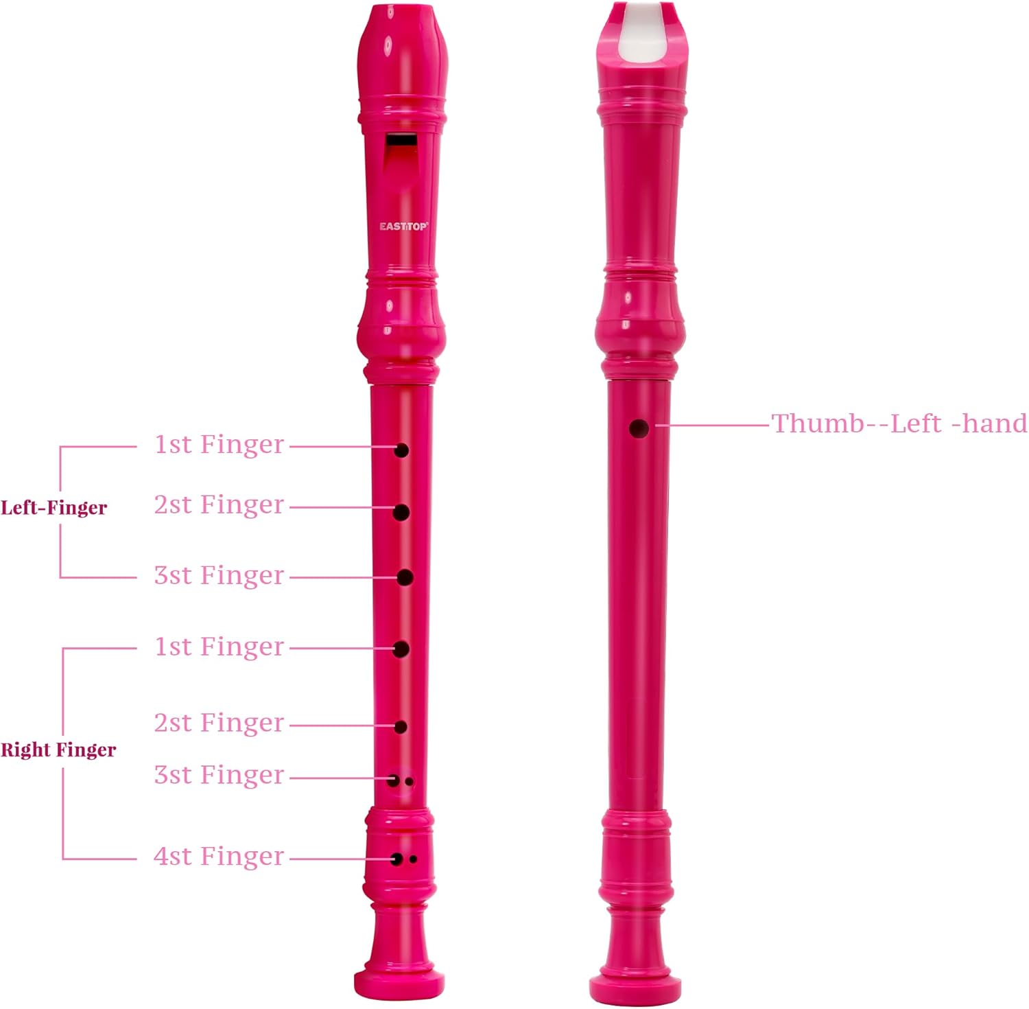 EAST TOP Soprano Recorder for Kids Beginners, 8 Hole Plastic German Fingering Flute Recorder 3 Piece with Cleaning stick, Cotton pouch, Fingering Chart, Colorful box (Hot Pink)
