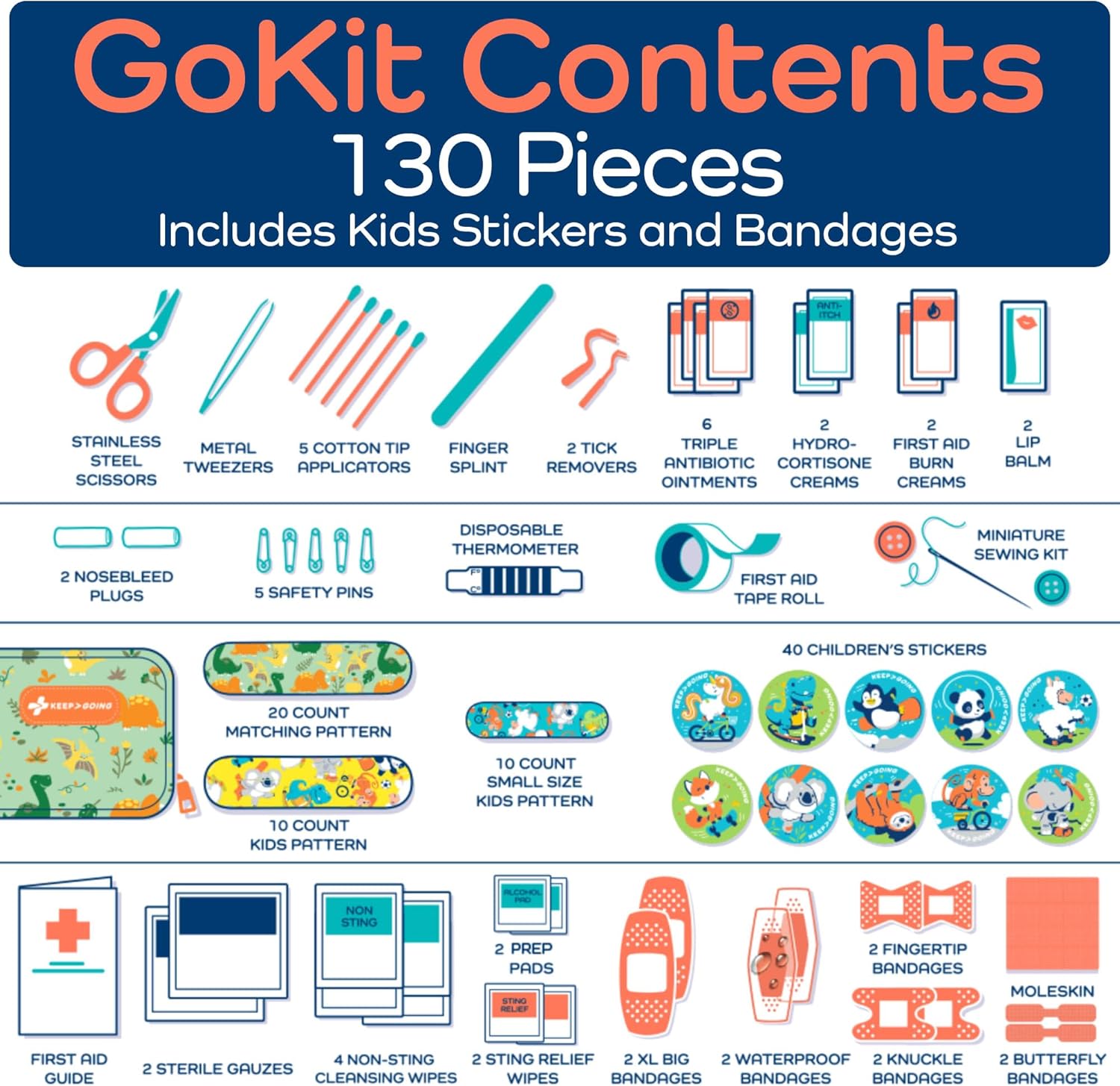 KeepGoing Travel First Aid Kit for Kids – 130 Pc. for Car, Home, Purse, Diaper Bag & Backpack with Latex-Free Bandages - Mini First Aid Kit Travel Size TSA-Approved