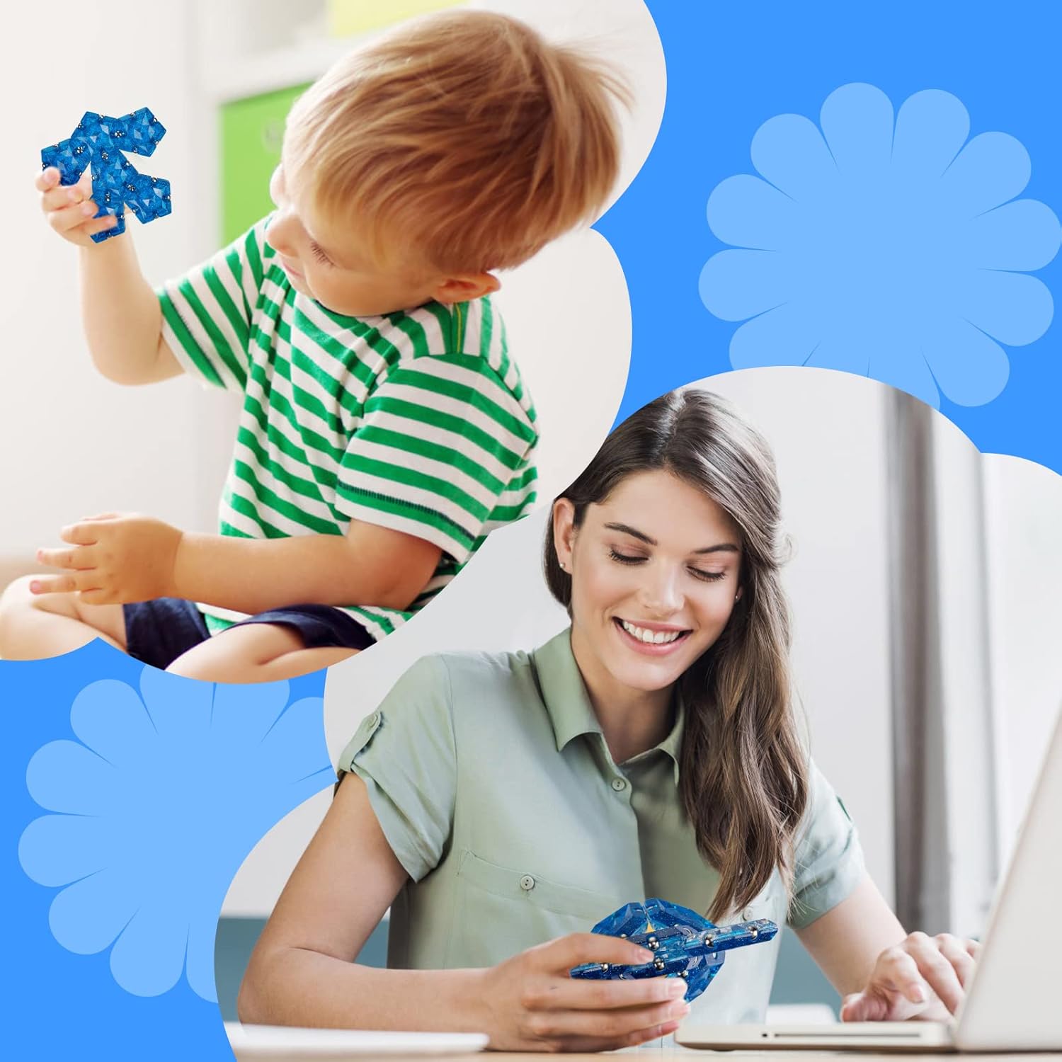 - [Creative Magnet Fidget Toys]: This creative magnetic fidget puzzle will dazzle your mind and occupy your hands. Its beautiful, endless transformations will keep your imagination fixated. Enjoy hours of mental challenge and fun with it comfortably in your hands.